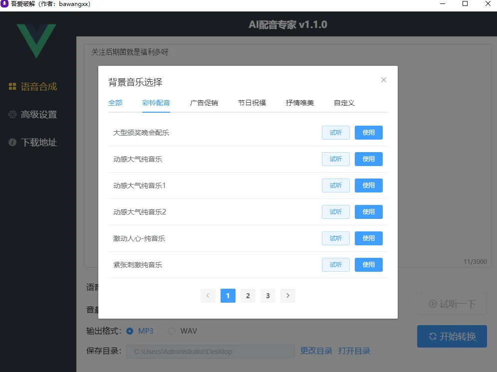 目前共包含40种+发音,全部是免费无限制的哦!并且软件还内置了数十款背景音,更方便你的创作!