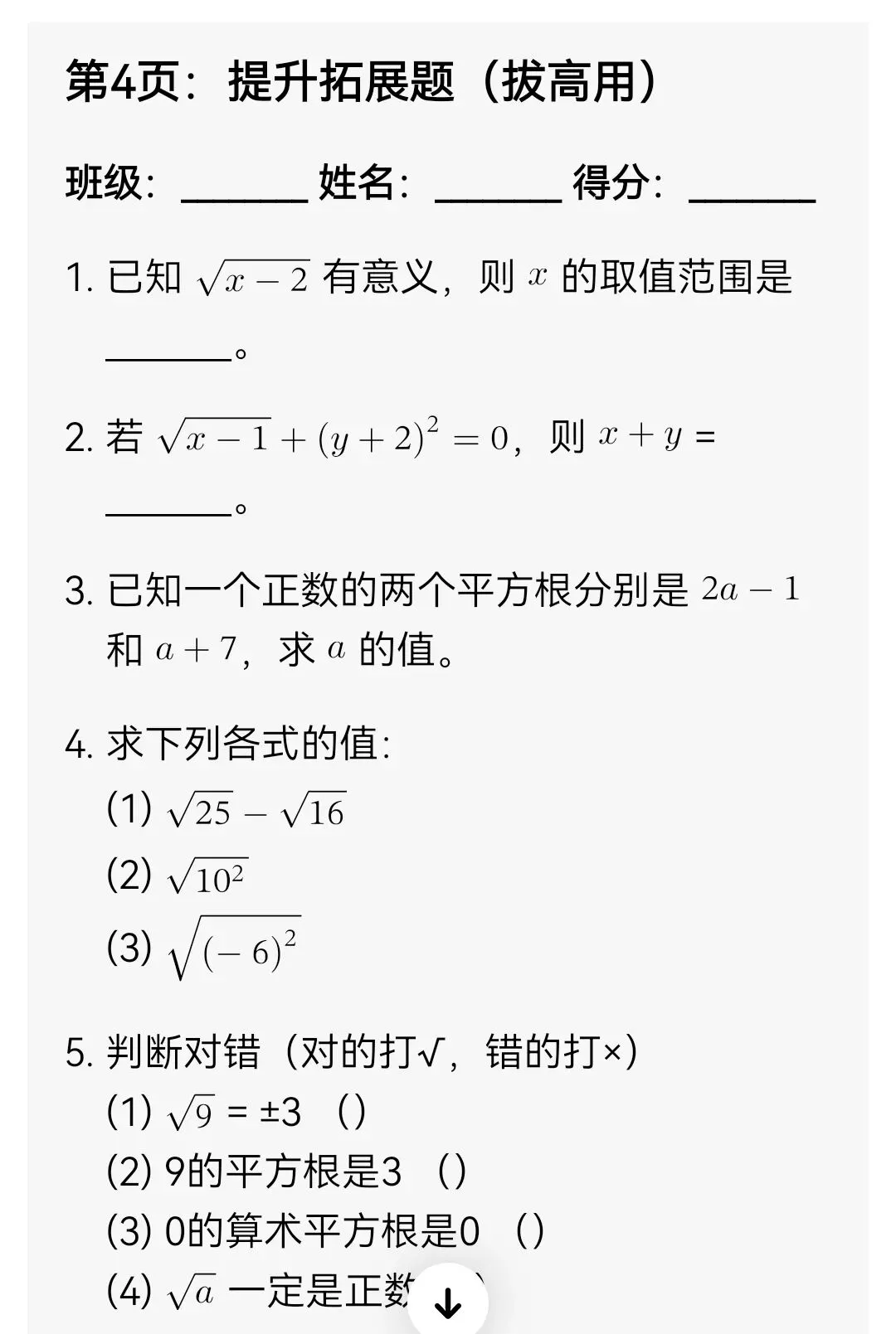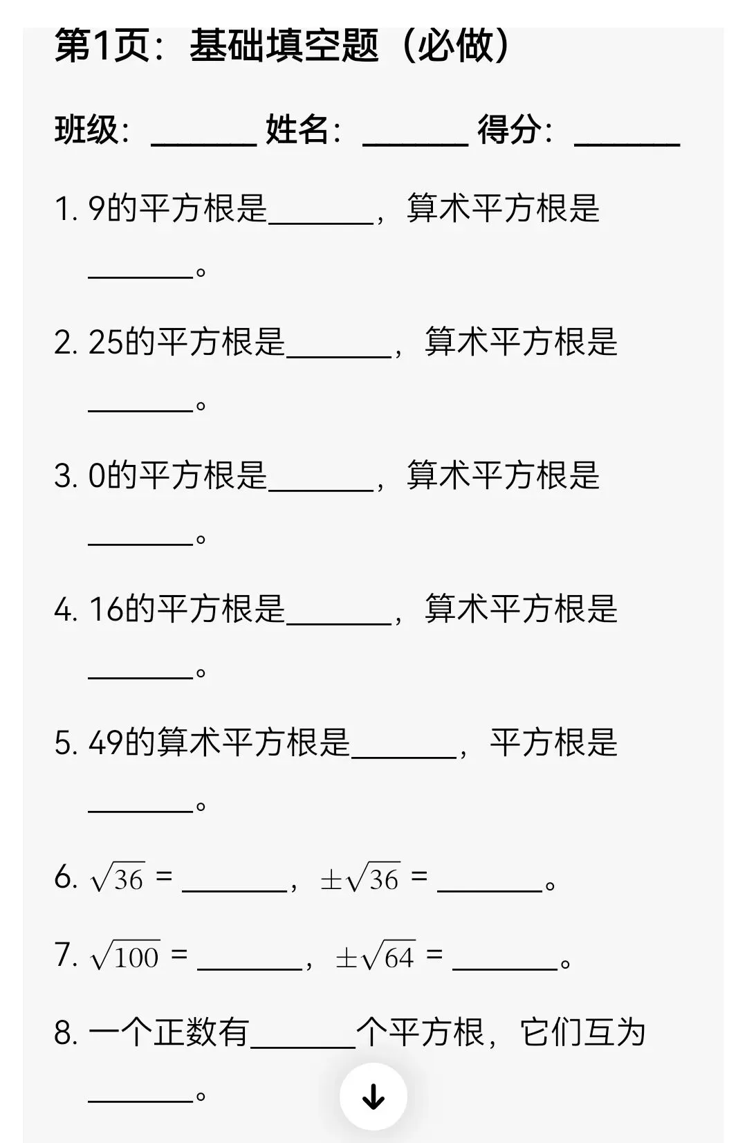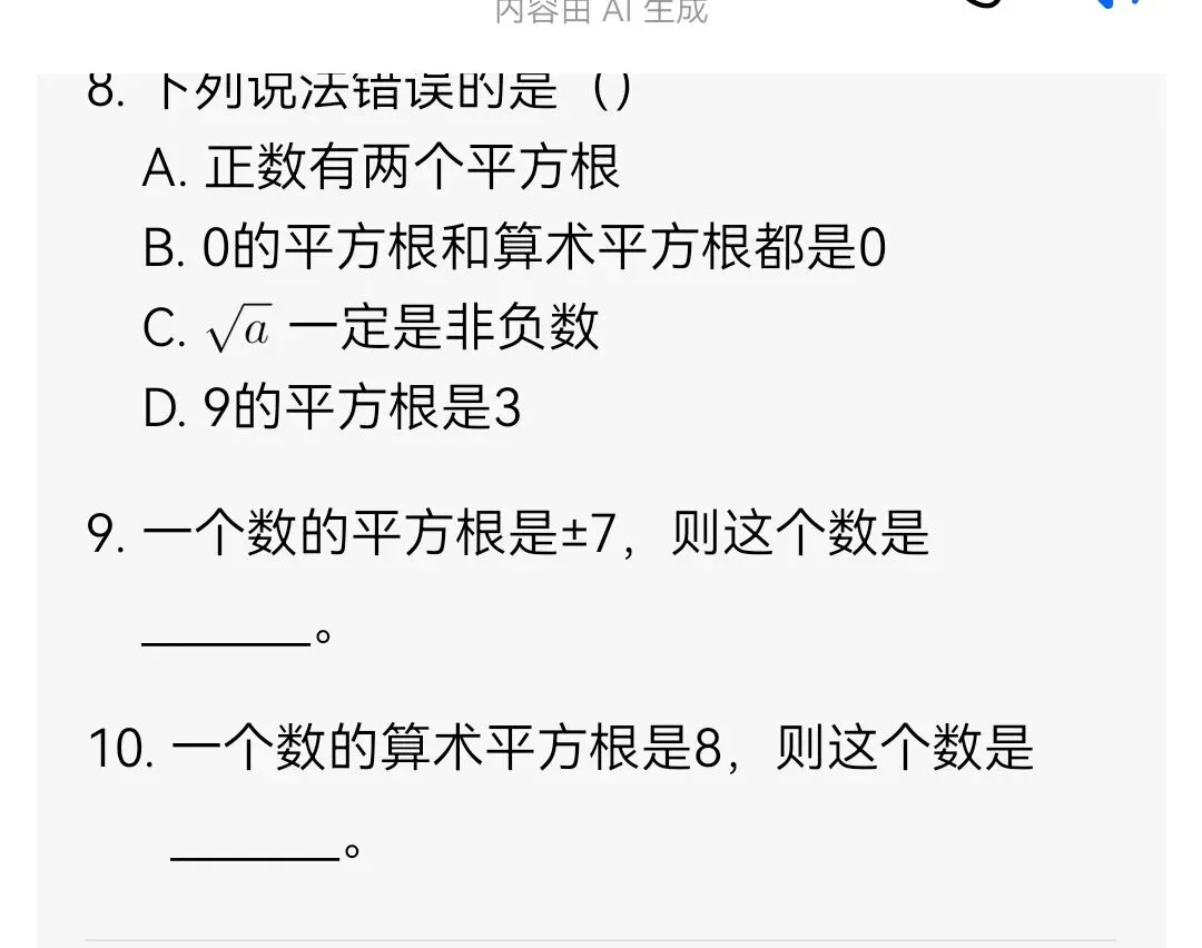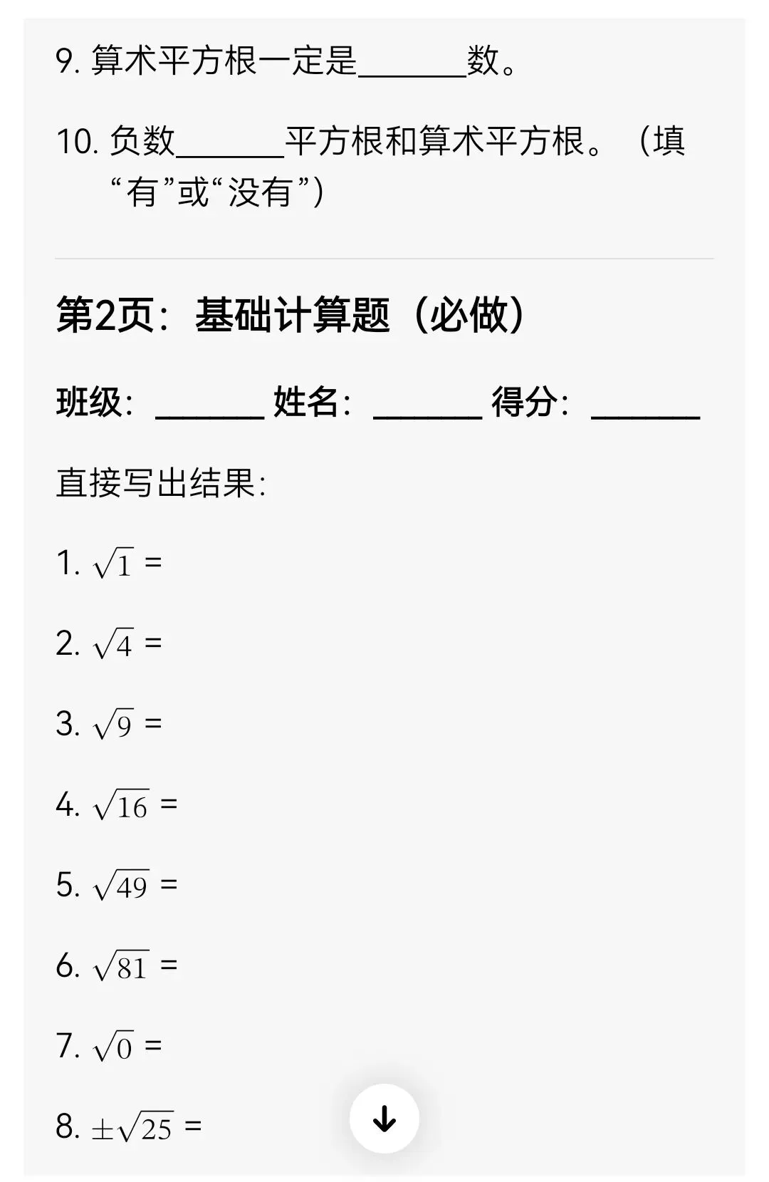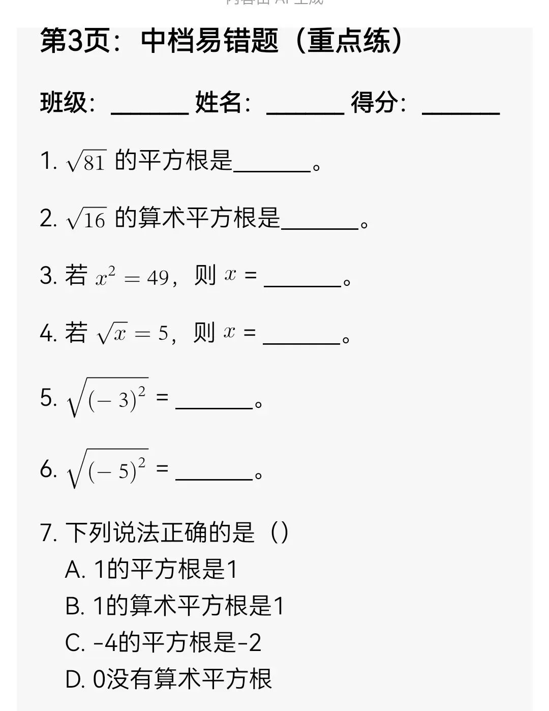 平方根与算术平方根分层专项训练(可打印)