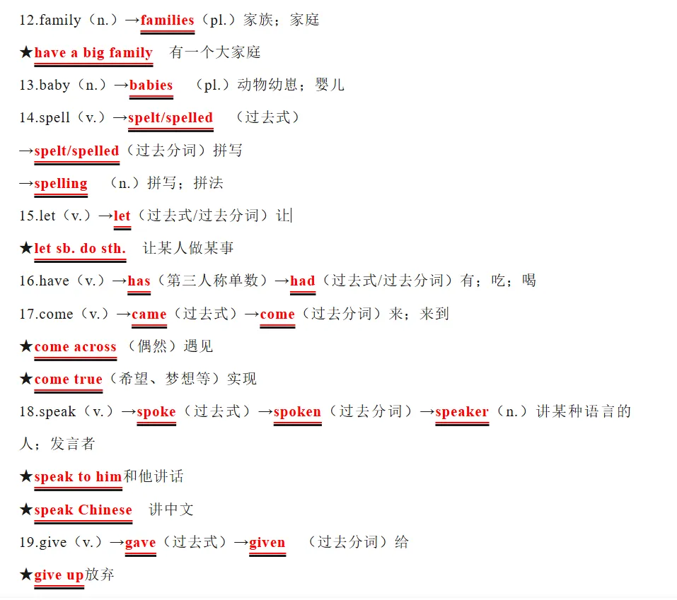 中考高频必背词形转换归纳(空白+记背版)电子版可下载