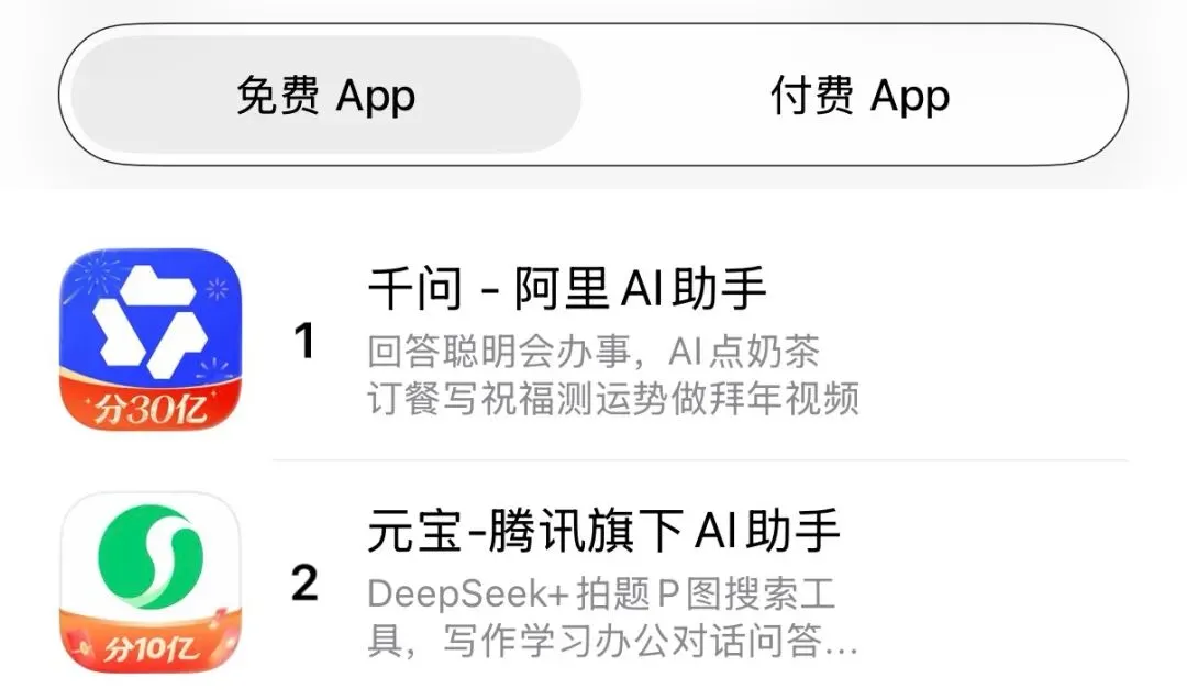 2026年初,腾讯元宝正式发布“元宝派”,接入群聊功能,并且发布10亿红包,一度登上苹果App Store应用商店免费应用的榜首,与阿里千问、字节豆包分庭抗礼。