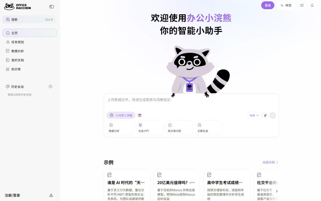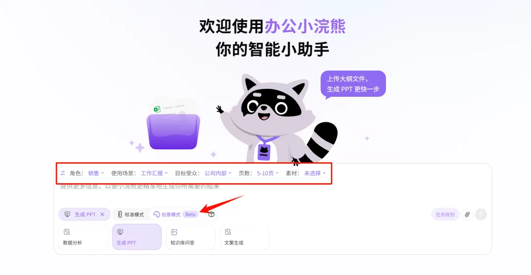 办公小浣熊是商汤科技出品的AI办公工具,集PPT生成、数据分析、任务规划于一体,用户数已经突破300万。它最近重磅上线的PPT创意模式,真正做到了”一键生成,页页可改”,我体验完直接路转粉。
