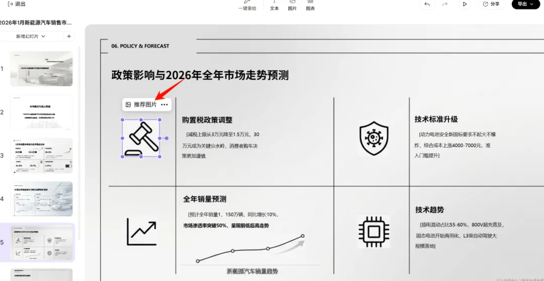 如果对 AI 自动匹配的背景图或插图不感冒,点击图片左上角的“推荐图片”,小浣熊会直接给你推一堆更契合主题的高清图库,当然也可以自己上传图片。