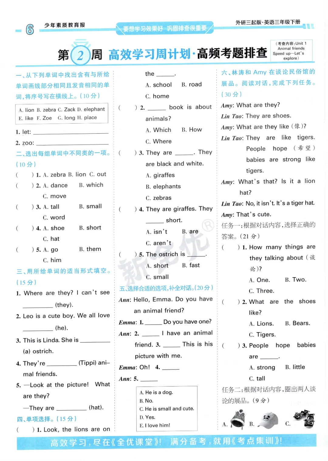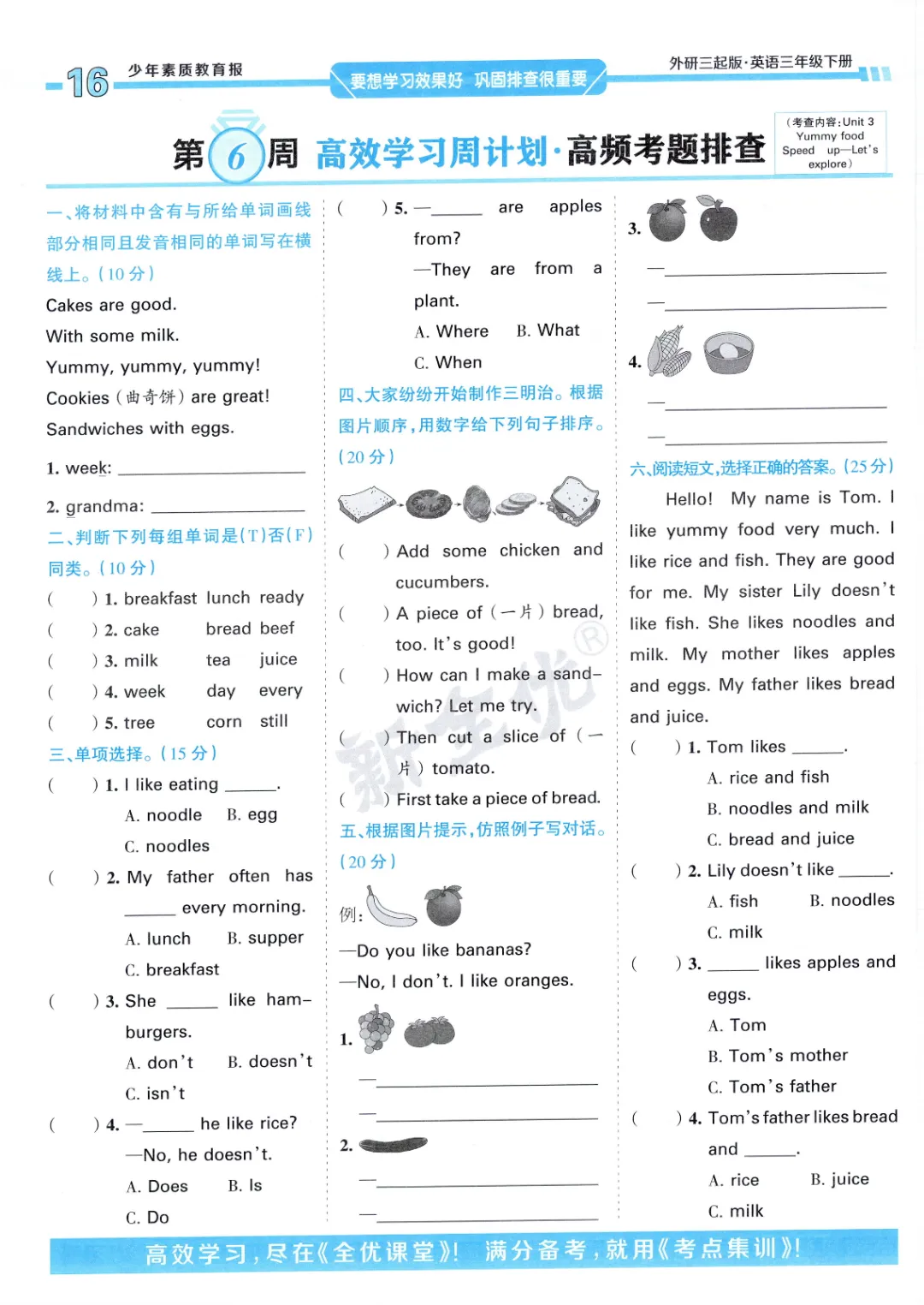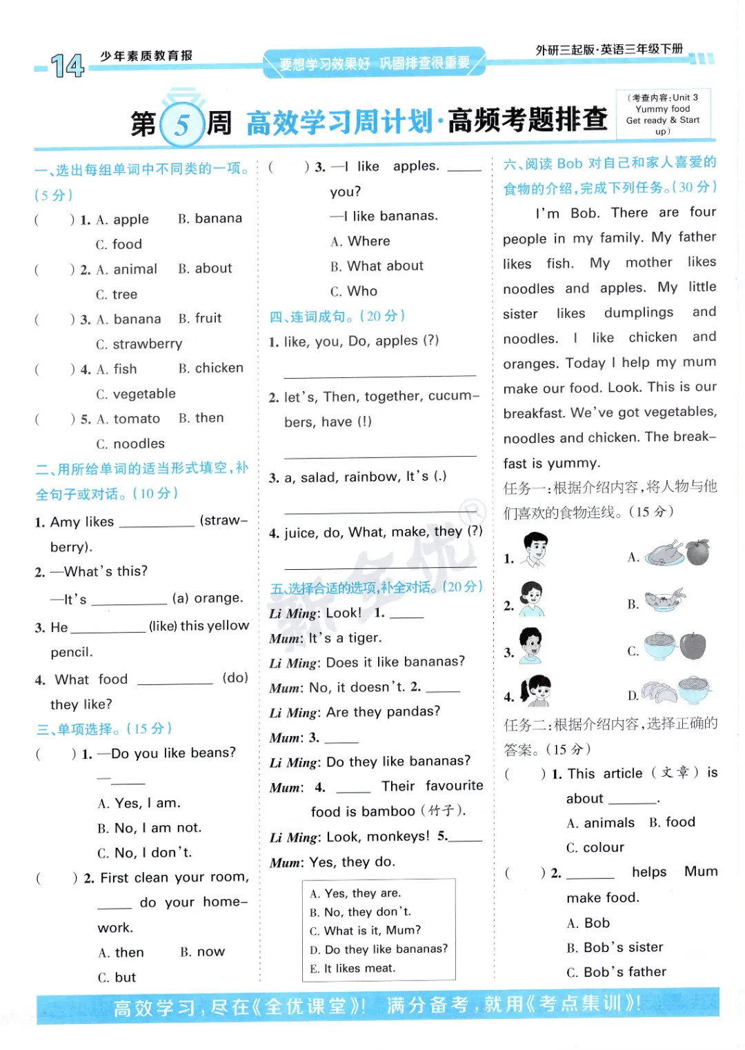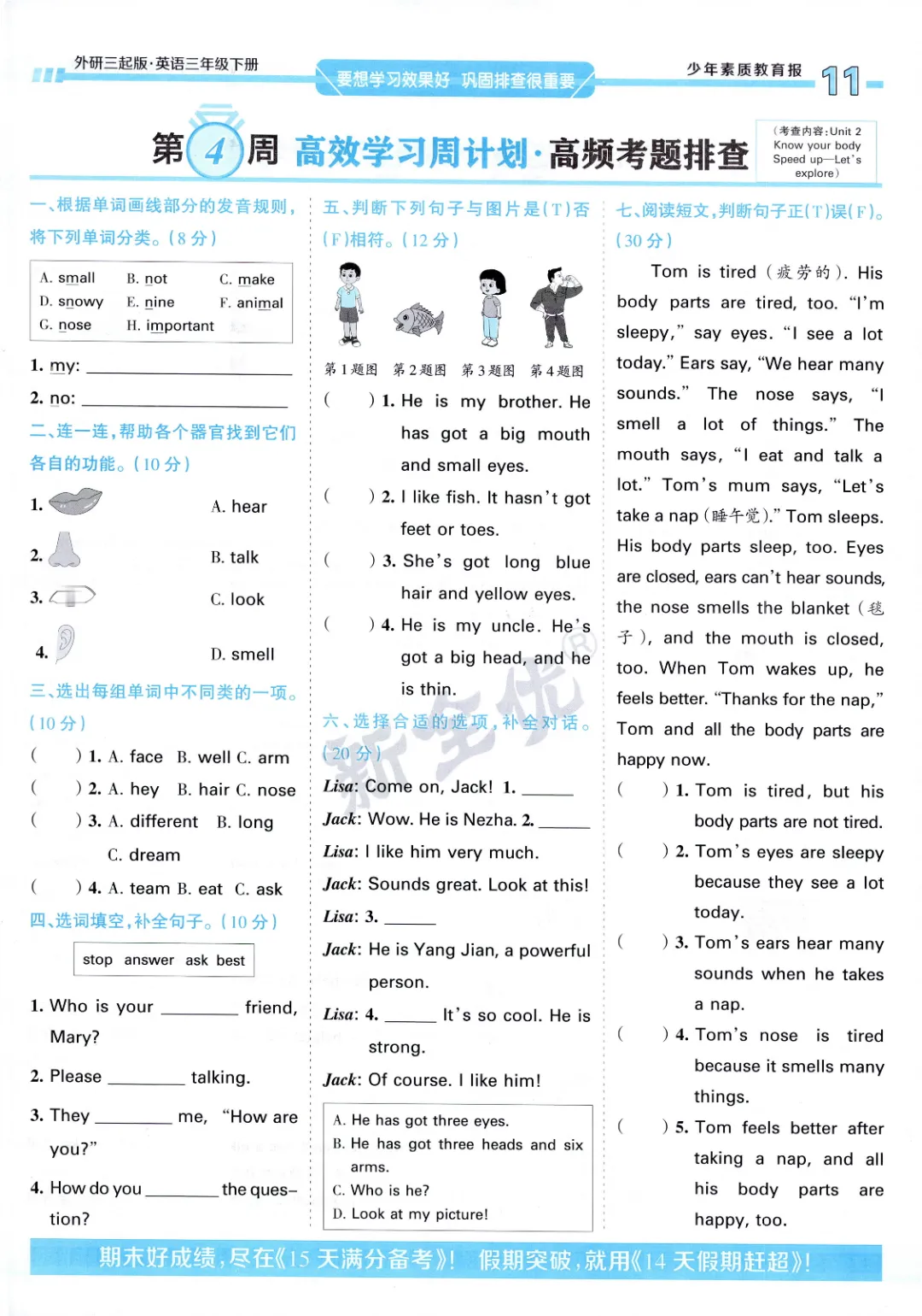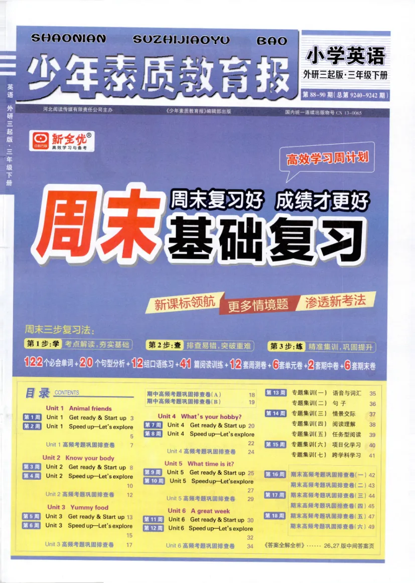 2026年春外研版3年级 (三起点)下册周末基础复习,课时练、单元、期中、期末学习资料,可打印