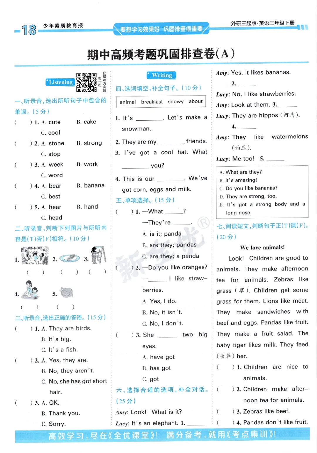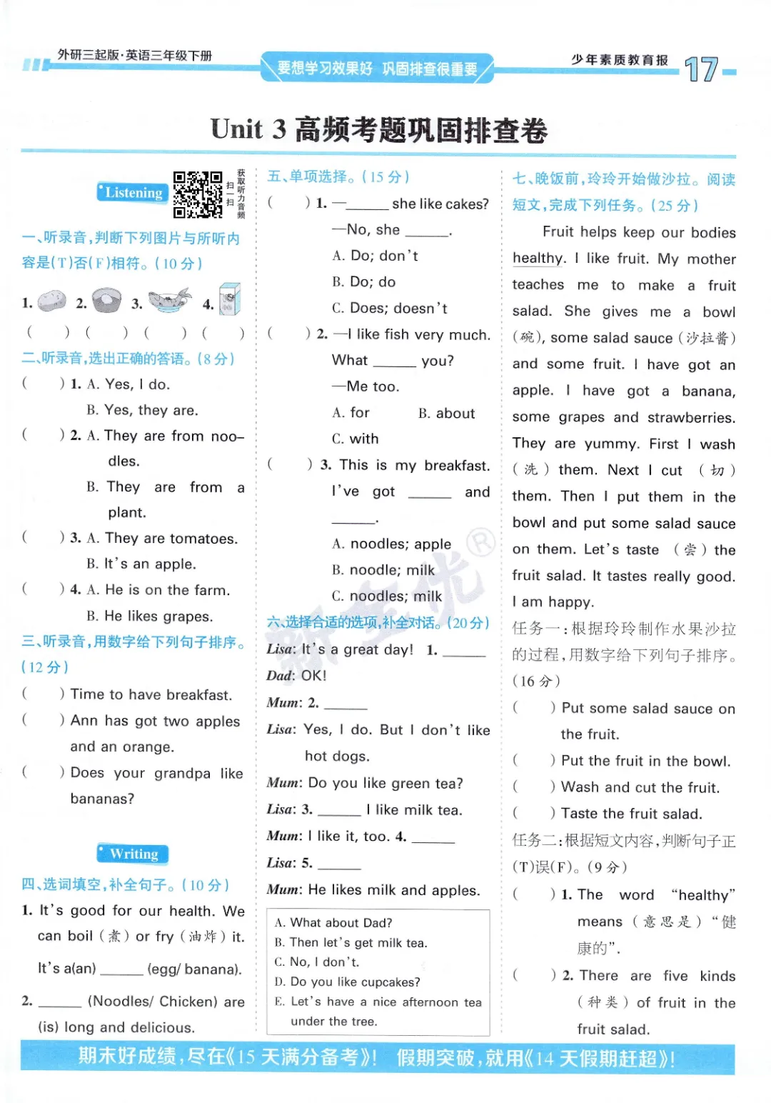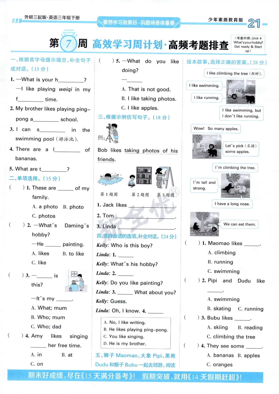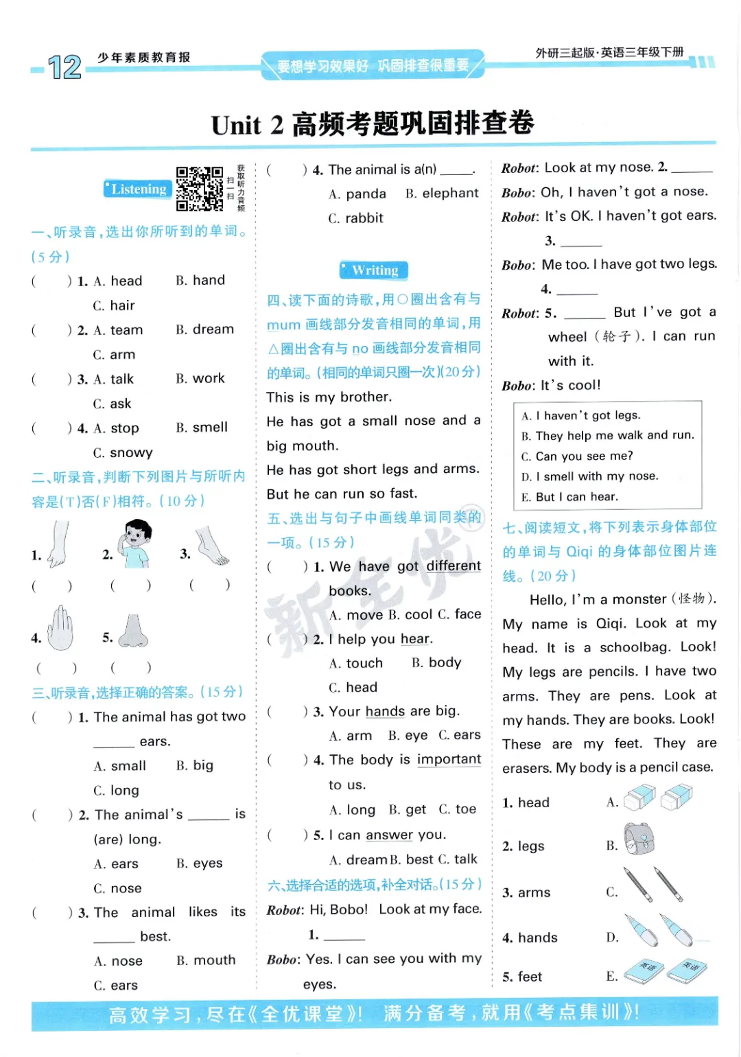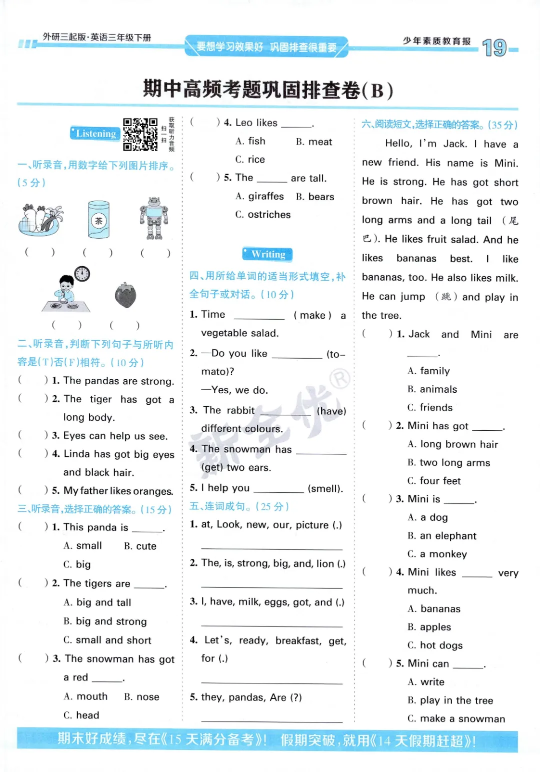 2026年春外研版3年级 (三起点)下册周末基础复习,课时练、单元、期中、期末学习资料,可打印