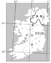 爱尔兰地处欧洲西部,素有“翡翠岛国”之称,全国绿树成荫,河流纵横。读爱尔兰简图,完成5~6题。