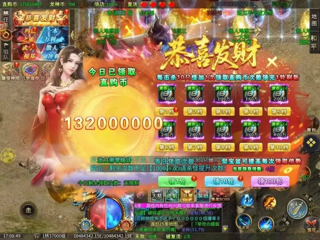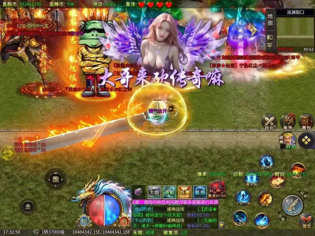 195超变神器版本,上线158W直购币解锁第一档3米礼包,首冲礼包,冠名礼包。 直接让兄弟们弹射起飞,光速发育!打怪刀刀直购币,打BOSS出神装兑换充值点,零氪散人花时间也能通关!散人追梦神装直接回收几百上千充值点(买一切礼包)多种跨服玩法,跨服攻沙,跨服挖矿,跨服BOSS,跨服争霸,都会获得海量直购币,以及大量材料等。