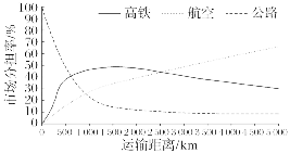 (2024·河南许昌模拟)高铁快递是利用日常开行的高铁列车,为客户提供小件物品“门到门”全程运送的高端快递服务。如图示意目前不同运输方式快递市场分担率随距离变化。据此完成4~6题。