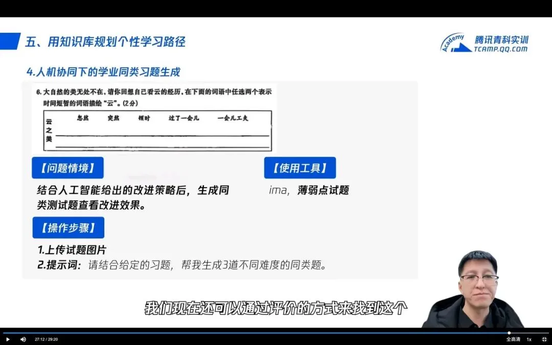 问题情境:结合人工智能给出改进策略,生成同类测试题目,以期巩固和查看改进后的效果。