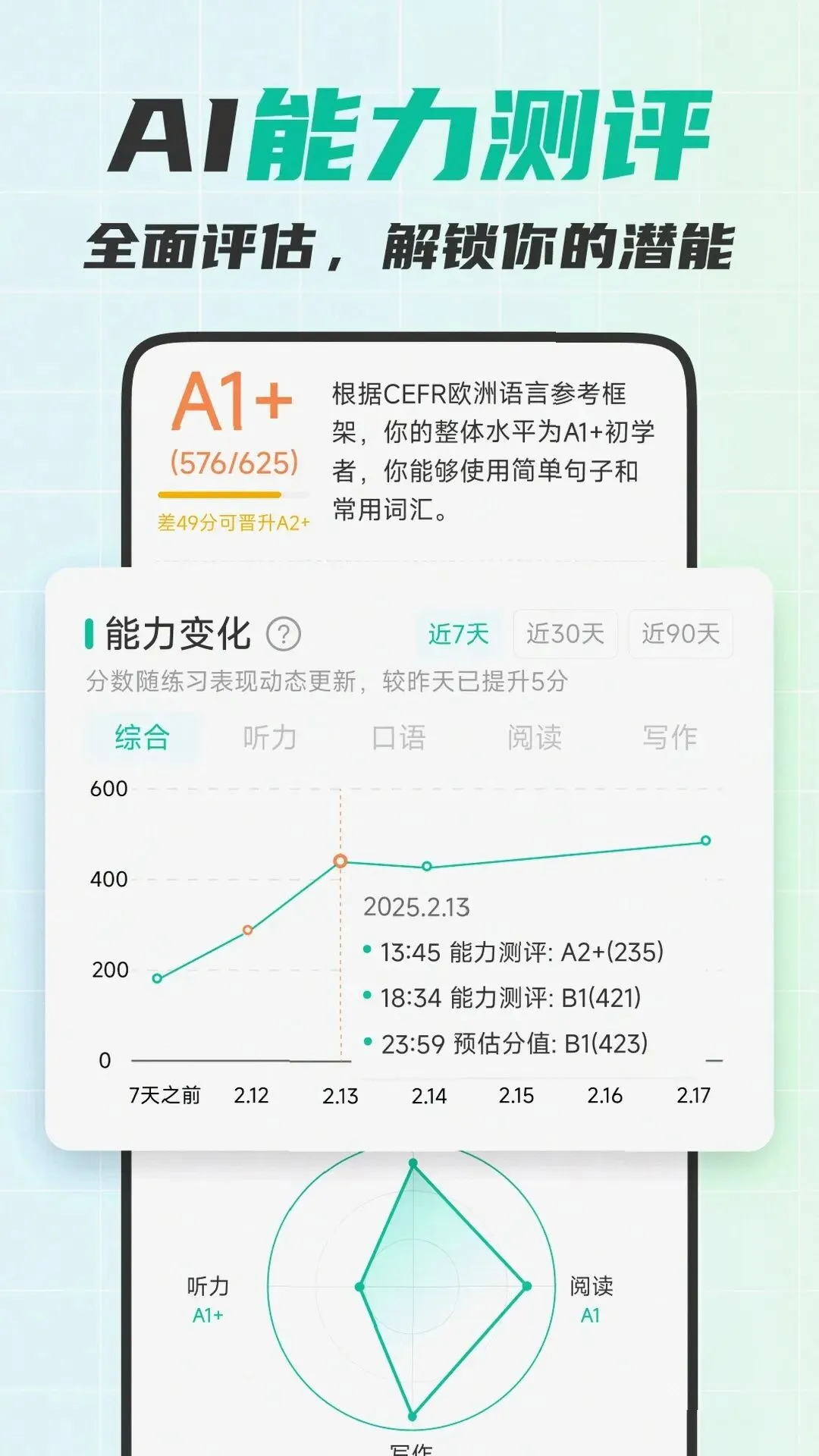 可栗口语还有很多贴心的细节:专业考试题库全覆盖,同步适配考研英语等热门考试,练完复试之后准备其他英语考试也能用;多端数据云端同步,手机、平板无缝切换,在图书馆用平板练,回宿舍用手机接着练,学习进度完全不中断;800万+用户口碑验证,用户满意度高达99%,是国内AI口语赛道用户规模与活跃度双第一的产品;私密1对1学习环境,完全不用怕开口练的时候被别人笑话,社恐也能放心大胆说;还有5分钟AI精准能力测评,基于CEFR欧洲通用语言标准,出具专业分级报告与定制化提升方案,哪怕你基础差也知道从哪开始练。