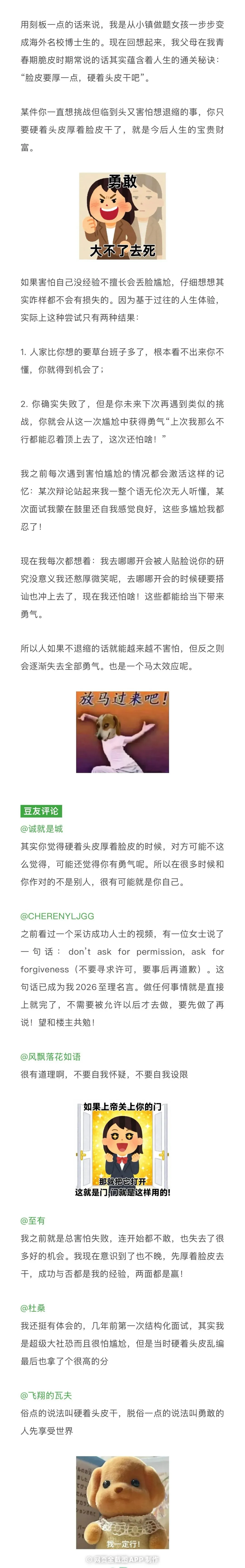【无能二哈】人间神器:一是人民币,二是书.有钱的好处是别人很少为难你;读书的好处是自己不会为难自己. HELLO 2026 万事皆胜意 永远不要延迟幸福, 新买的衣服马上就穿, 想吃的蛋糕立刻去买。 你要知道,人生没有预言, 每一刻都是直接上演。 余生看似悠长,却也转瞬即逝, 长到足以许下愿望, 短到才一回神幕布就落下。 直到某个毫无征兆的瞬间,忽然明白, 幸福从来不需要等待, 你眼前的这一切,就是生命的全部答案。 晚上那叫鬼压床 倒过来看,好神奇啊…… 某个晚自习传遍了全班的纸 学到了 可惜你不看逐玉,跟你说不明白 这下知道老师为什么一下就发现家长签名是假的了 上课上出了拍卖会的感觉 当我以为朋友要鼓励我减肥时没想到还有第二关 二次元头像才是真大佬的梗吗 破案了,这位是木虱。 好诚恳,我终于明白为啥 我会对某些人突如其来的爱意而莫名其妙发怒了。 芋頭超人請吃掉!! 网友去西园西偶遇一只调皮的小猫, 追着小姐姐的披帛玩, 这和《簪花仕女图》岂不是一模一样。 不愿为工作多花一分钱be like 新年新生,心想事成