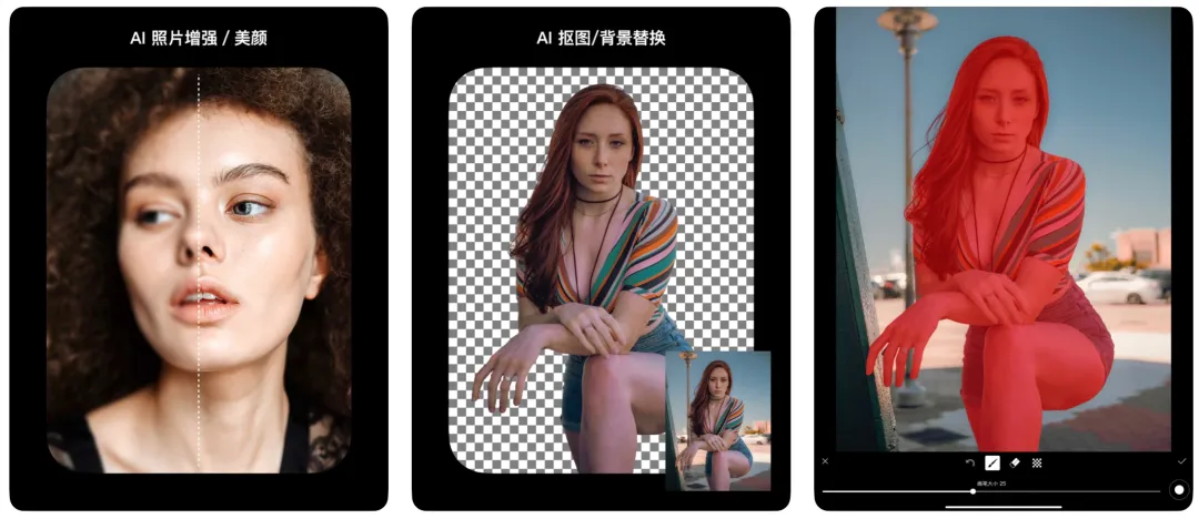 软件内置了去除照片中不需要内容功能、脸部美化、照片增强、低亮度增强、抠图、放大图片分辨率、模糊脸部、艺术照生成,而且这些功能都支持一键AI制作。
