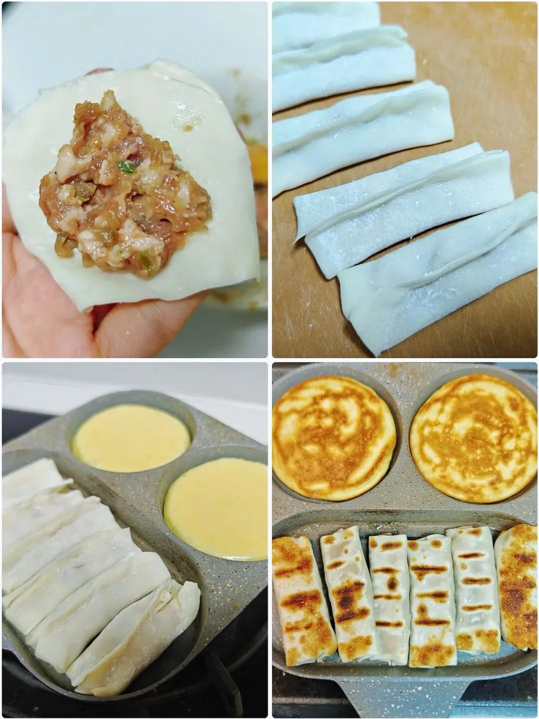 4、平底锅少油面朝下小火煎至两面金黄即可出锅。