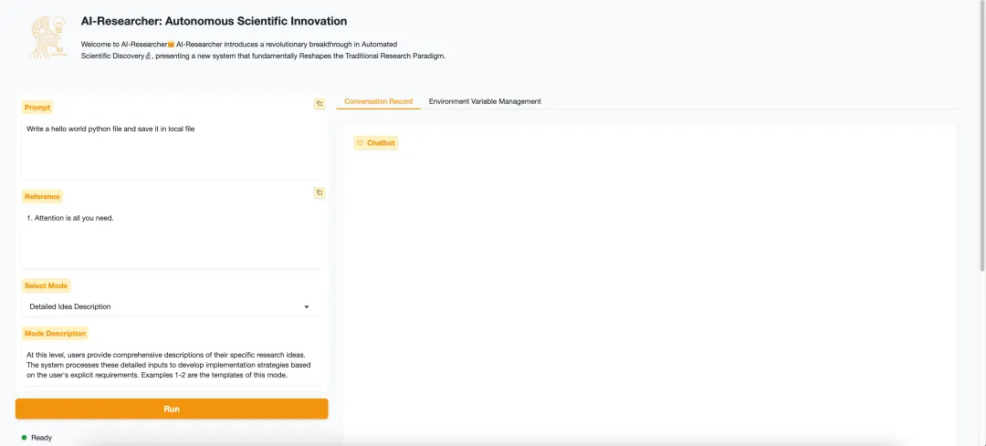 # 启动自动化研究流程python -m ai_researcher.run \ --query "你的研究想法描述" \ --references "参考文献路径" \ --category "研究领域" \ --output "输出目录"