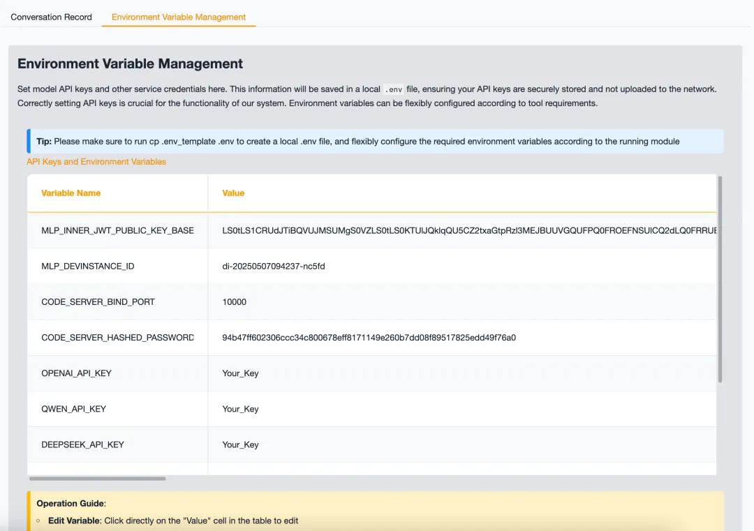 # 配置 Docker 容器参数DOCKER_WORKPLACE_NAME=workplace_paperBASE_IMAGES=tjbtech1/airesearcher:v1GPUS='"device=0"'# 指定 GPUCONTAINER_NAME=research_containerPORT=7020