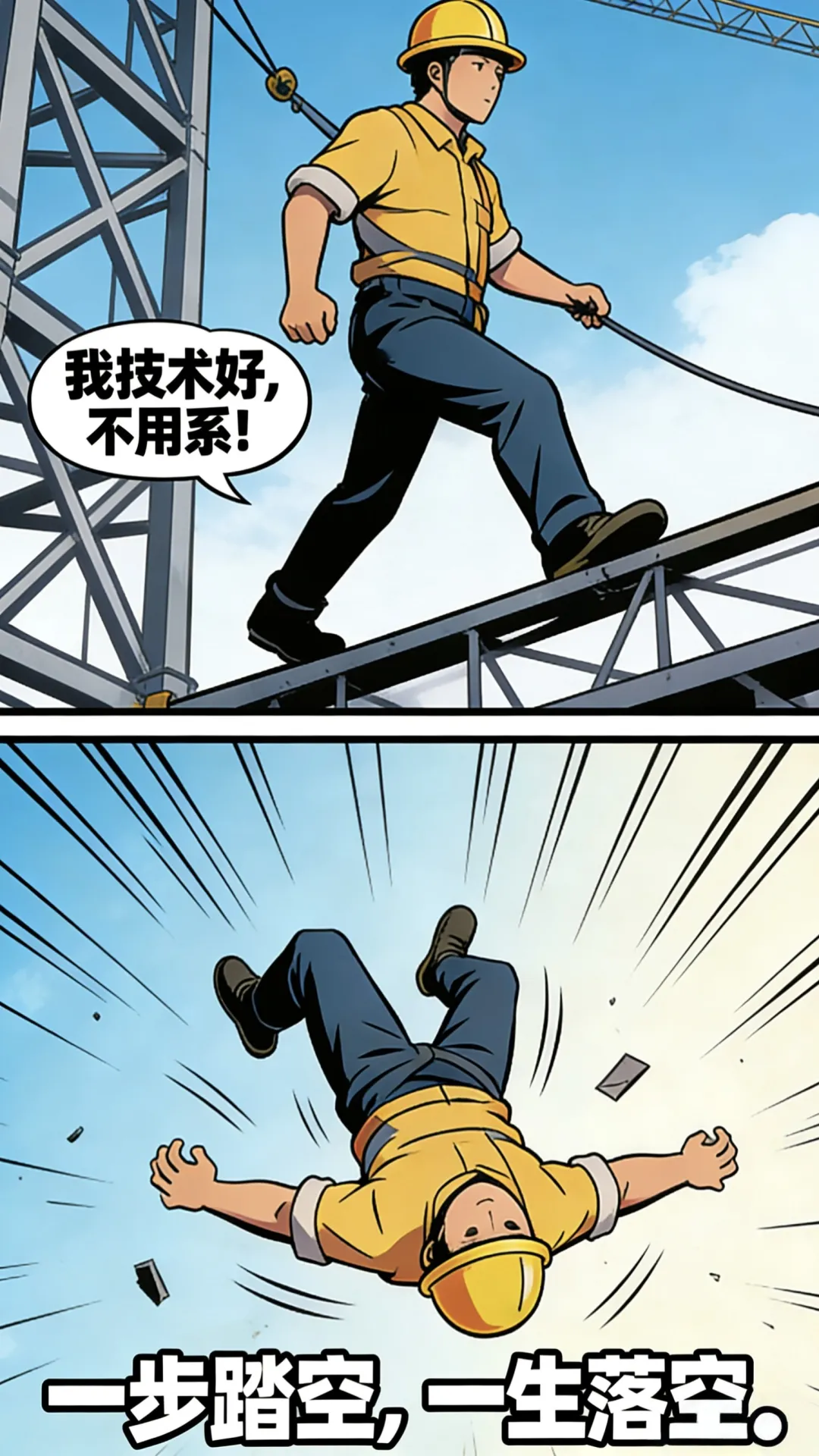 ⚠️ 安全提醒高处作业必须系好安全带,高挂低用,生命不侥幸。