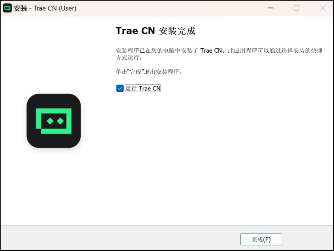 此时安装已完成,可以勾选“运行Trea CN”并单击“完成”,等待软件初始化。