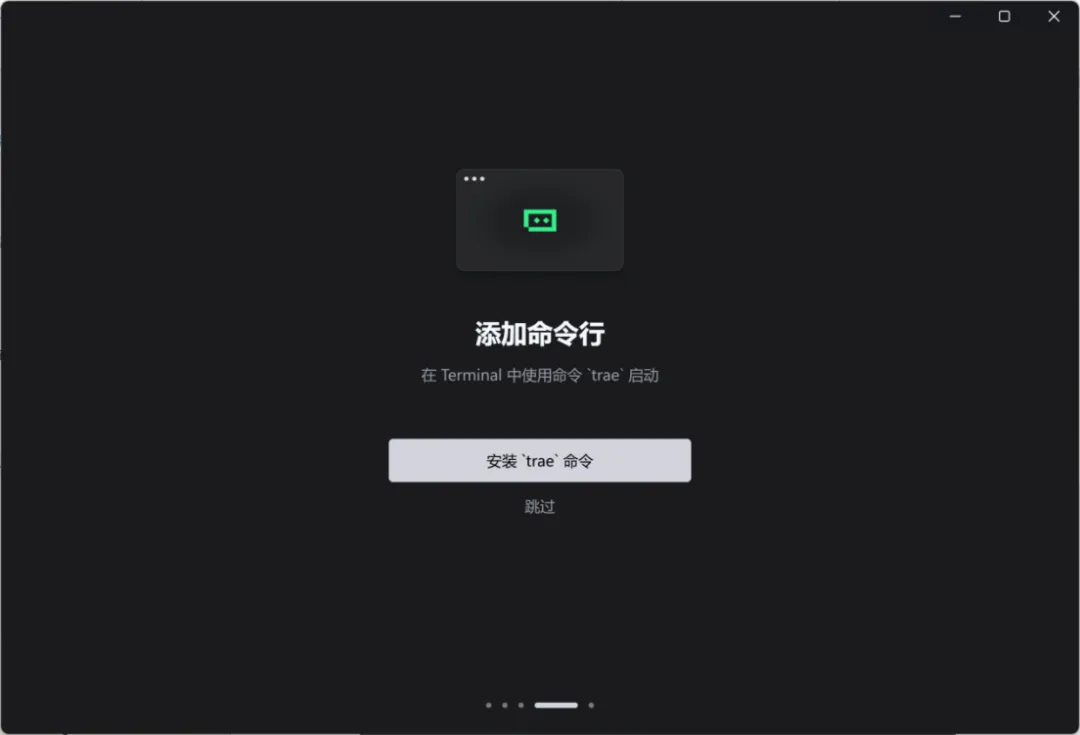 当前页面可以在终端添加命令行`trae`,如果暂时无需要,可单击“跳过”进入下一页。