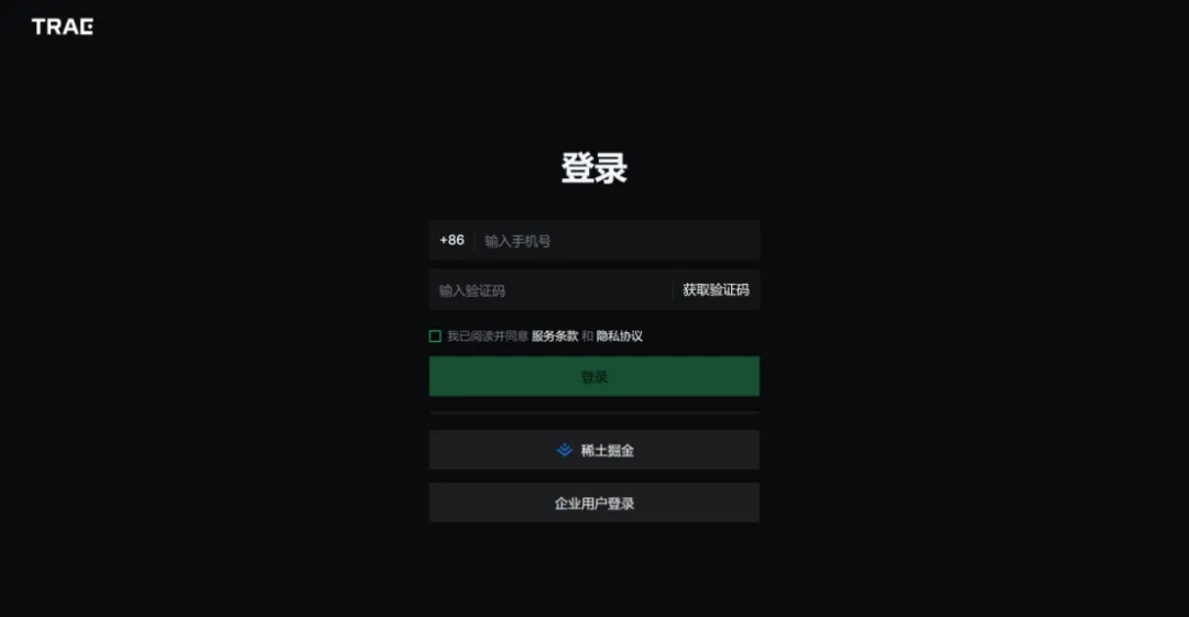 手机号验证完成后,选择“登录并打开TRAE”。