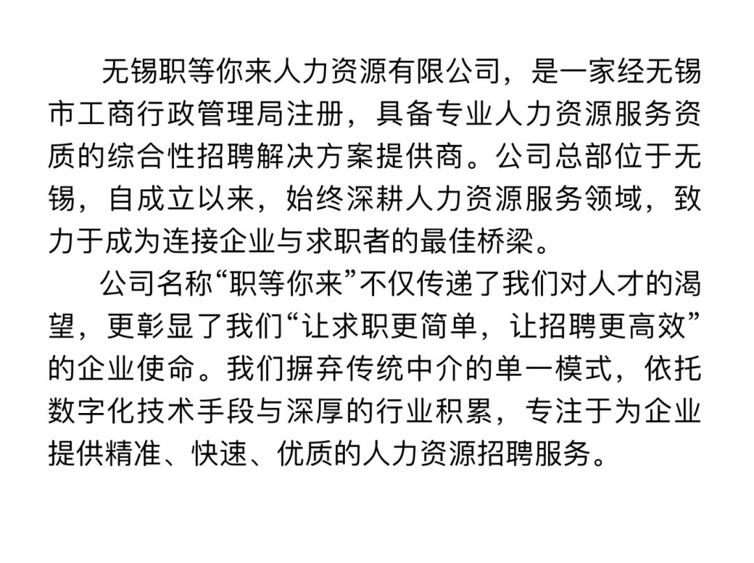 无锡职等你来人力资源有限公司,招“主管”也招“运营”,好位“职”等你来!