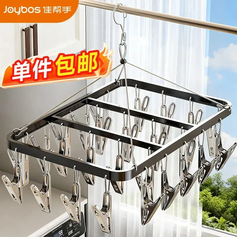 佳帮手晾衣架多夹子晒袜子神器铝合金晾晒架阳台家用多功能晒内衣夹26夹…
