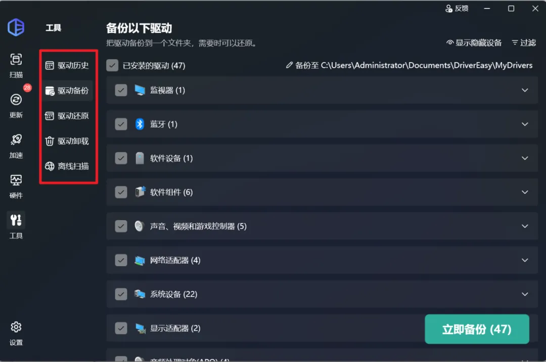 硬核神器,同类型软件中有它一个就够了! 众所周知,电脑驱动是硬件厂商根据操作系统编写的配置文件,是系统和硬件之间的媒介。 可以说如果没有电脑驱动,操作系统将无法向硬件下达指令,硬件也就无法正常运行了,因此安装驱动程序至关重要。 像网卡、键盘、显卡、声卡、摄像头等这类常见的硬件设备,就必须安装驱动才能正常运行! 如果设备出现故障打不开,包括设备管理器中显示的黄色感叹号,大概率是驱动程序问题导致的,此时就需要给电脑重新安装驱动。 而现在市面上的驱动软件,要么广告满天飞,要么必须开了V1P才能高速下载驱动,软件使用体验极差! 所以今天,阿浩就想着给大家分享一款超好用且便捷的驱动安装备份还原工具,有需要的小伙伴及时收藏! D*river*E*asy/文末获取 软件是绿色单文件版软件,软件大小仅5.17 MB,非常小,但是功能一点也不比其他的驱动软件差。打开软件可扫描驱动,如果是没安装驱动扫描后可直接安装。 如果是已经安装了驱动程序,并且能够正常,别更新驱动,否则有可能出现蓝屏等情况。 另外,在软件的【工具】中还包括驱动历史、驱动备份、驱动还原、驱动加载和离线扫描的功能。 比较实用的是驱动备份和还原,备份好后,直接用这款软件直接还原,比重新去使用工具下载安装要好用! 其他的像【加速】和【硬件】的功能,大家可以自己去体验一番! 那么以上就是它的核心功能了,我还是那句话,你可以不用,但不能没有,说不定哪天碰上了,能帮你省下不少时间 软件获取方式 关注下方微信公众号【科技阿浩】 聊天框发送关键词【20260320】,即可免费获取 对您有帮助,还请顺手点个【赞】+【爱心