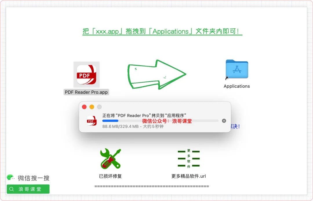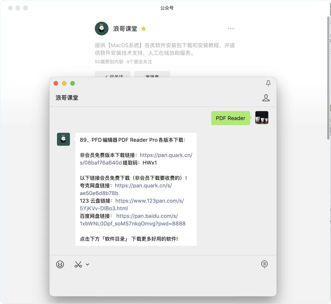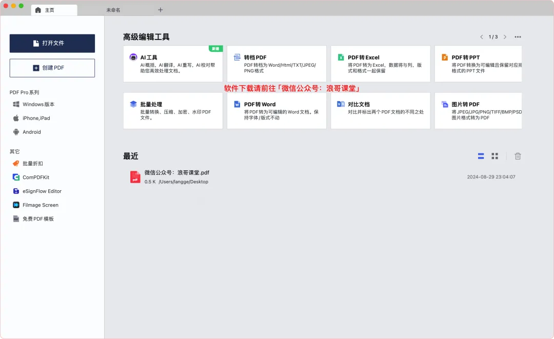 在「浪哥课堂」公众号后台回复:PDF Reader ,即可获取网盘下载链接!