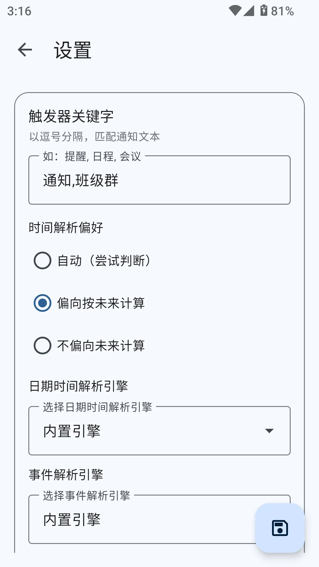 支持模糊时间识别,例如“今晚”“下午”“周末”