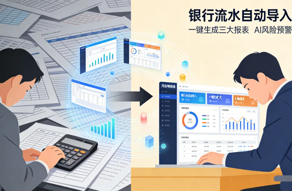 性价比之王:畅捷通好会计对中小企业财务最实用——银行流水自动导入、几分钟生成凭证、财务报表一键出,年底不用加班做年结。
