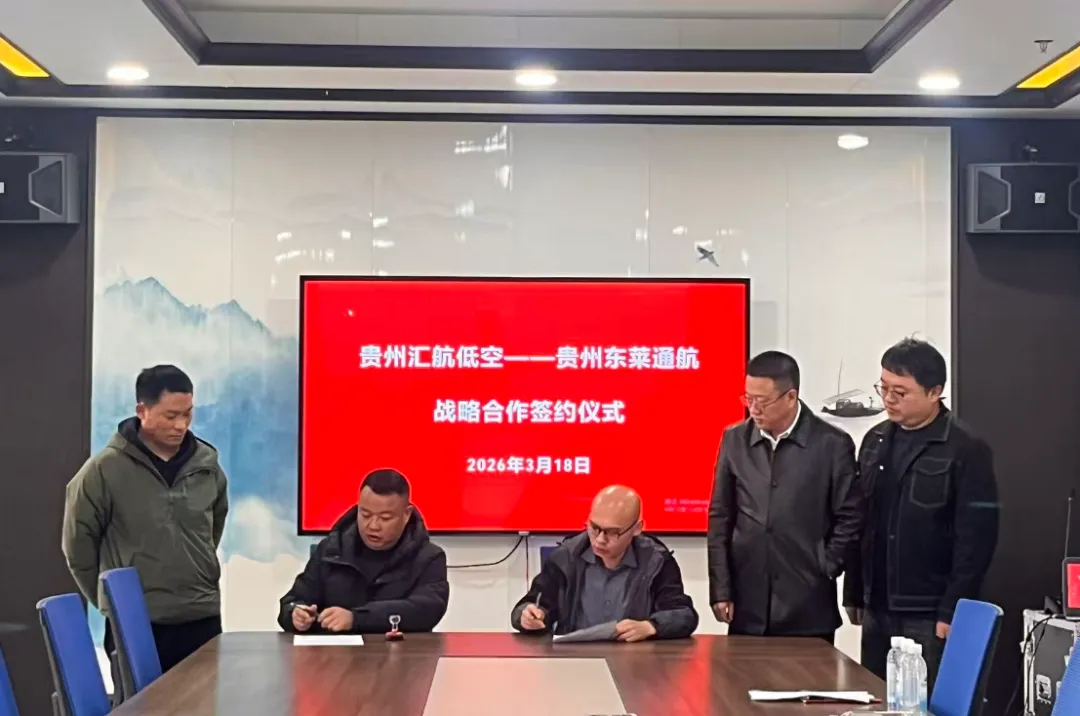 3月18日,遵义牟君集团旗下子公司贵州汇航低空经济产业发展有限公司与贵州东莱通用航空有限公司正式签署民用无人