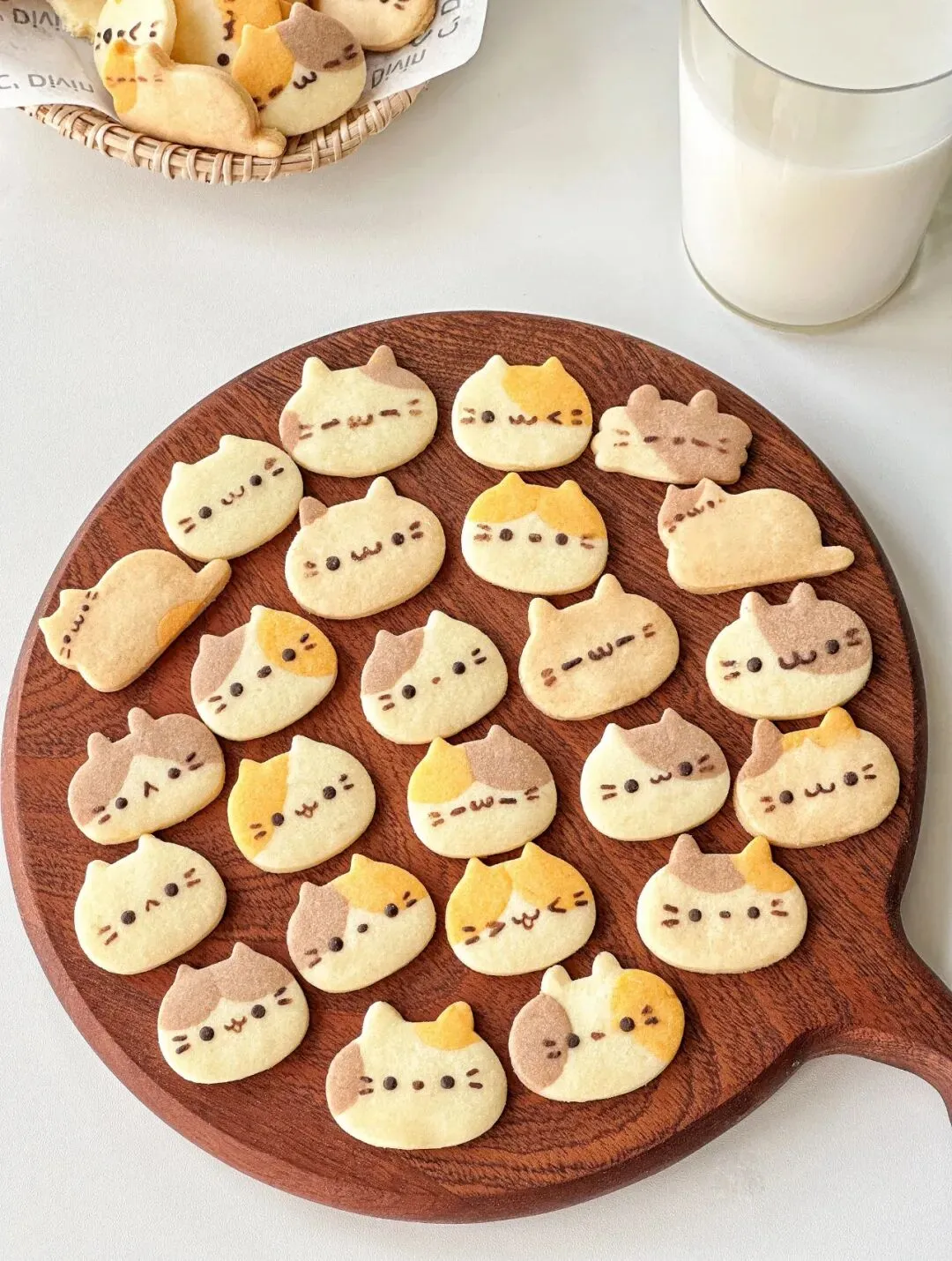 8.烤好后晾涼,用融化的巧克力画画出各种表情的小猫