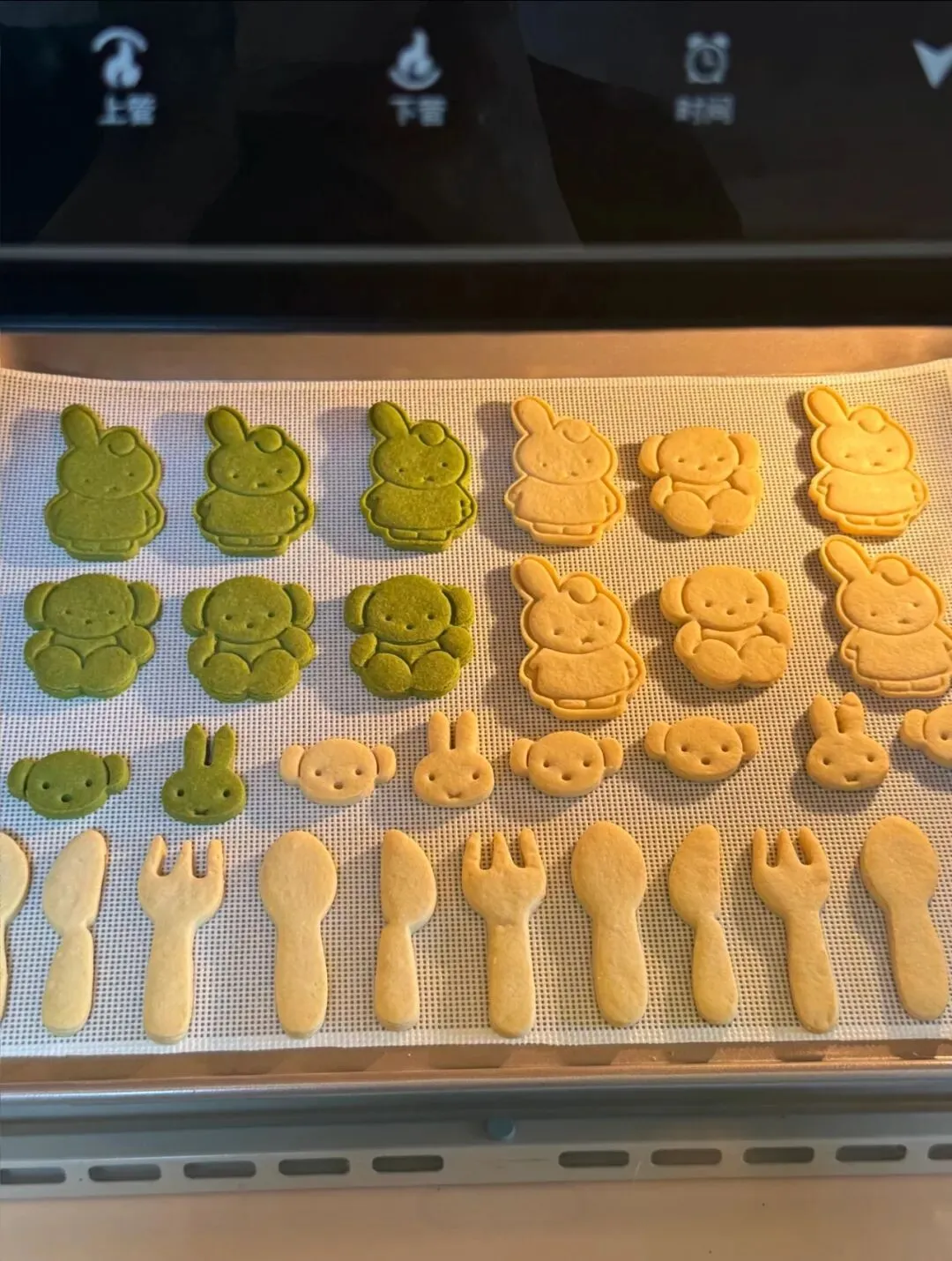 7.制作出不同花纹的小猫后送入预热好的烤箱160度烤20分钟