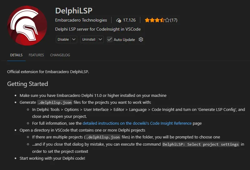 当然,EMB官方都提供了LSP插件来辅助Delphi开发者使用VSCode。