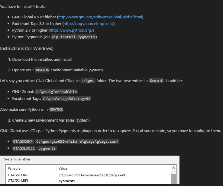 GNU Global、Exuberant Tags、Python、Pygments的python包,