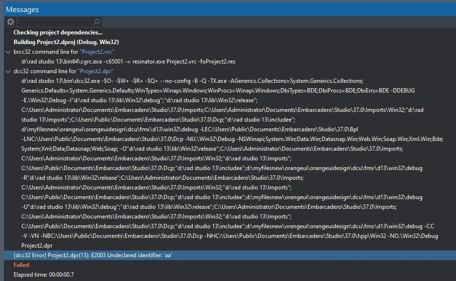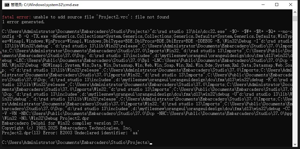 当你在用Delphi编译工程的时候,其实它本质上也是执行了一条命令,就是有点长: