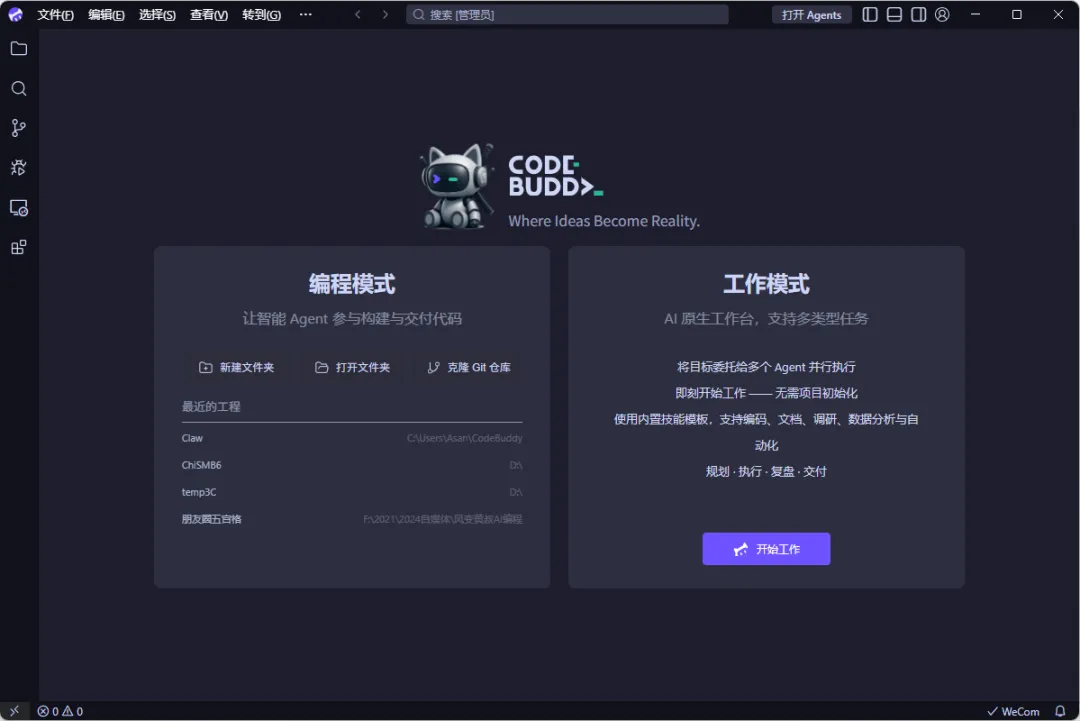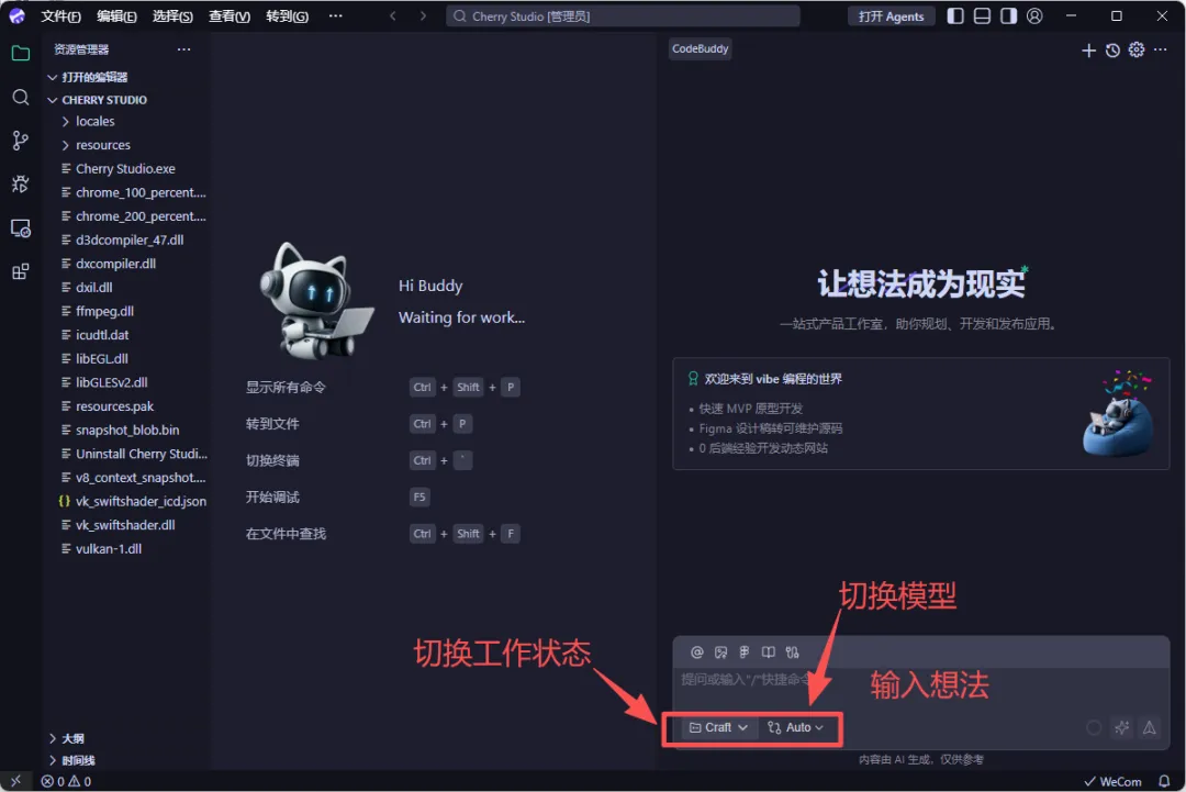 界面左侧”编程模式” → 进入CodeBuddy应用 -