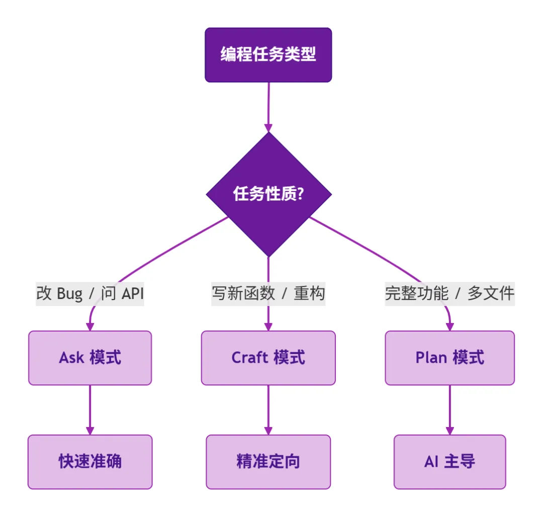 → Craft模式。精准定向,响应快 - 做一个完整功能、涉及多个文件