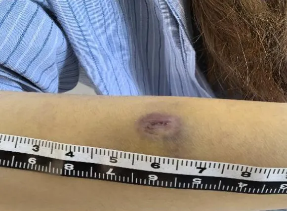 ▲5月23日报警时的伤口&5月29日伤情鉴定时的伤口