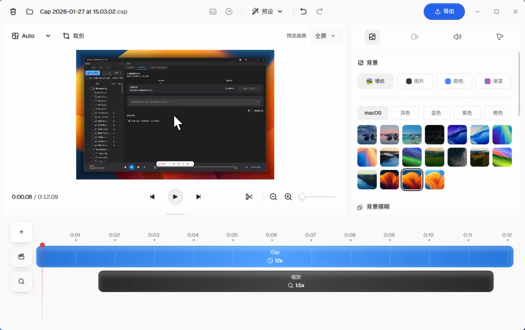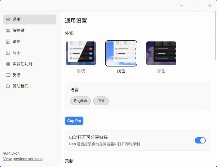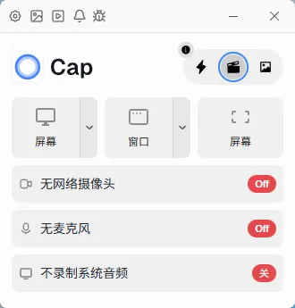 官方原版由 CapSoftware 开发,中文版基于官方最新 0.4.3 版本汉化优化,彻底移除登录与付费限制。