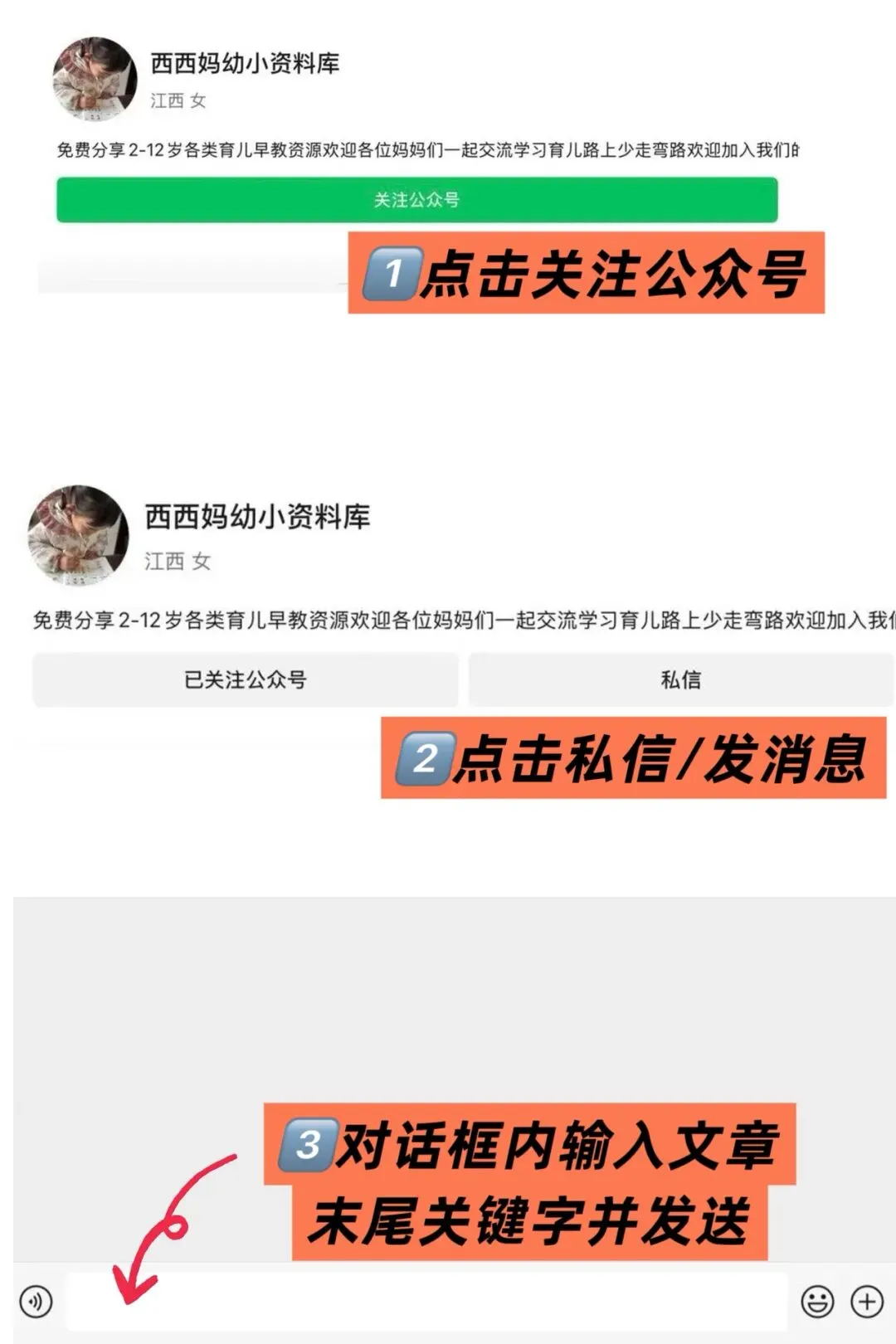 ②:点击下方卡片,按下图步骤,关注后在对话框回复关键词:1041