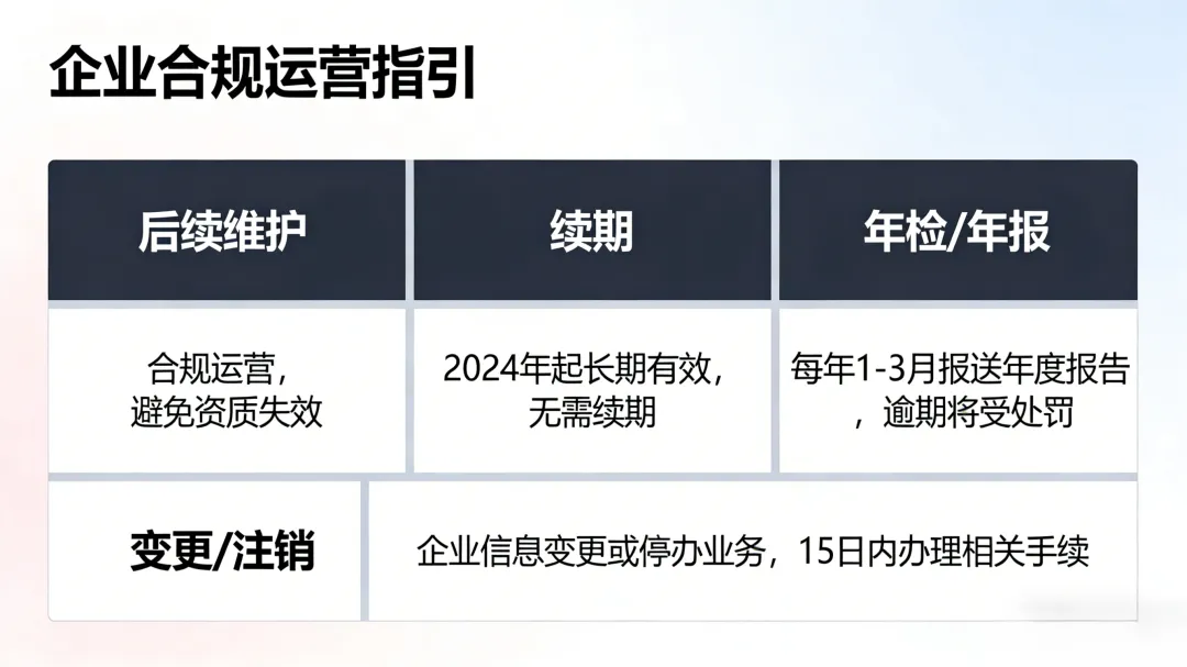 2. 后续维护(合规运营,避免资质失效)