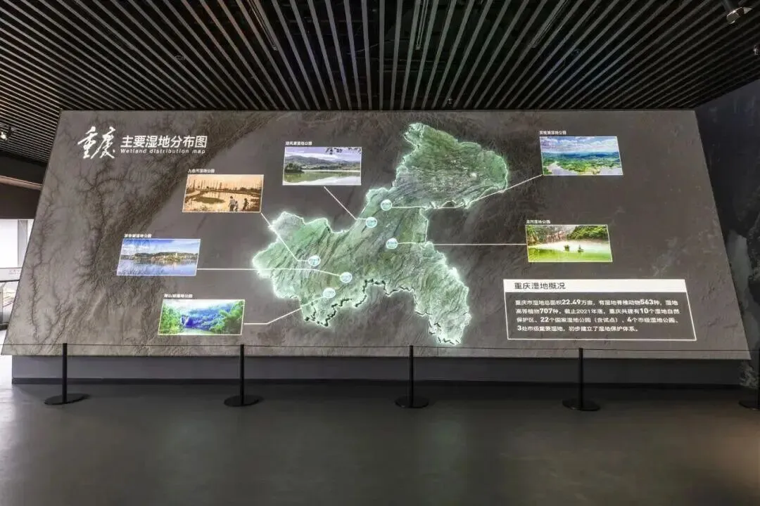 自然资源厅直面现实:页岩气模型剖面透明,红色管线清晰标示气体运移路径;矿物晶体按晶系分类陈列,棱角锐利,冷光微闪。沙盘投影生动地展示着湖田山林的错落,led大屏全景播放着高山巨石的起伏。此外还有许多微缩景观展示重庆的各种自然风貌,许多动植物标本展示着重庆生态环境的和谐与丰富。