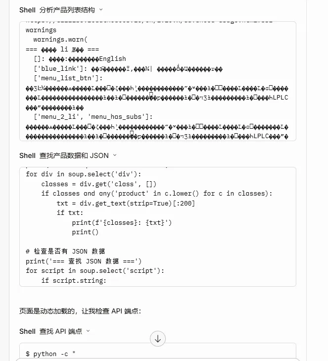 让 OpenCode 接管日常爬虫开发任务,过程全截图,给大家感受一下: 图1:自然语言生成爬虫代码 输入:“抓取某电商产品名称、价格、货期,数量等等,每个分类都翻页 500 页,绕过基础反爬”,AI 直接生成完整 Python 脚本,加上了随机 User-Agent 和代理中间件。
