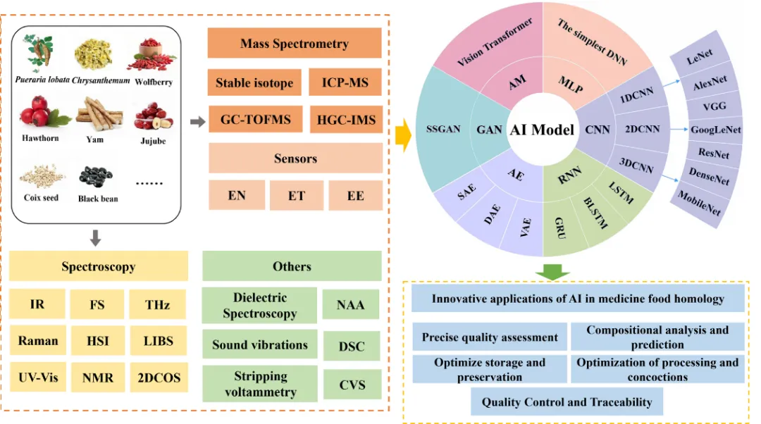 随着人工智能(AI)等前沿技术蓬勃发展,团队提出AI技术有望在药食同源药材原料的智能鉴别、加工过程模拟与优化、活性成分挖掘与功效预测以及个性化产品开发等多个层面引发深刻变革;如将团队在特定药材上产地加工方面的工艺创新,与AI的数据处理、模型预测能力相结合,有望实现从“经验驱动”到“数据与模型驱动”的范式升级,从而更精准、高效地守护从田间到餐桌的全链条药食同源药材品质与健康价值。这有望为整个“药食同源”大健康领域带来宏观与系统的变革潜力。相关综述以“Artificial Intelligence empowered evolution in medicine food homology”为题,发表于食品领域知名期刊《Food Bioscience》(中国科学院二区Top,影响因子5.9)。