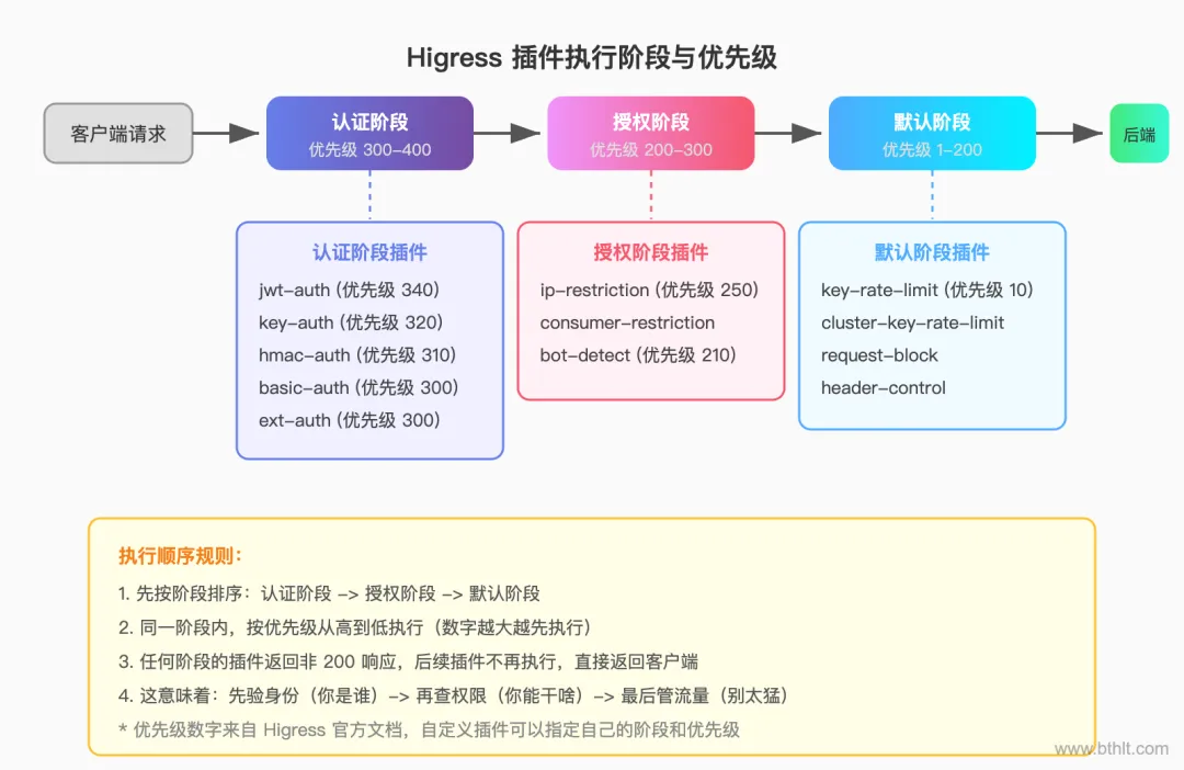 Higress 的默认优先级已经帮你安排好了这个顺序,但理解背后的逻辑,能帮你在自定义插件时做出正确的决策。