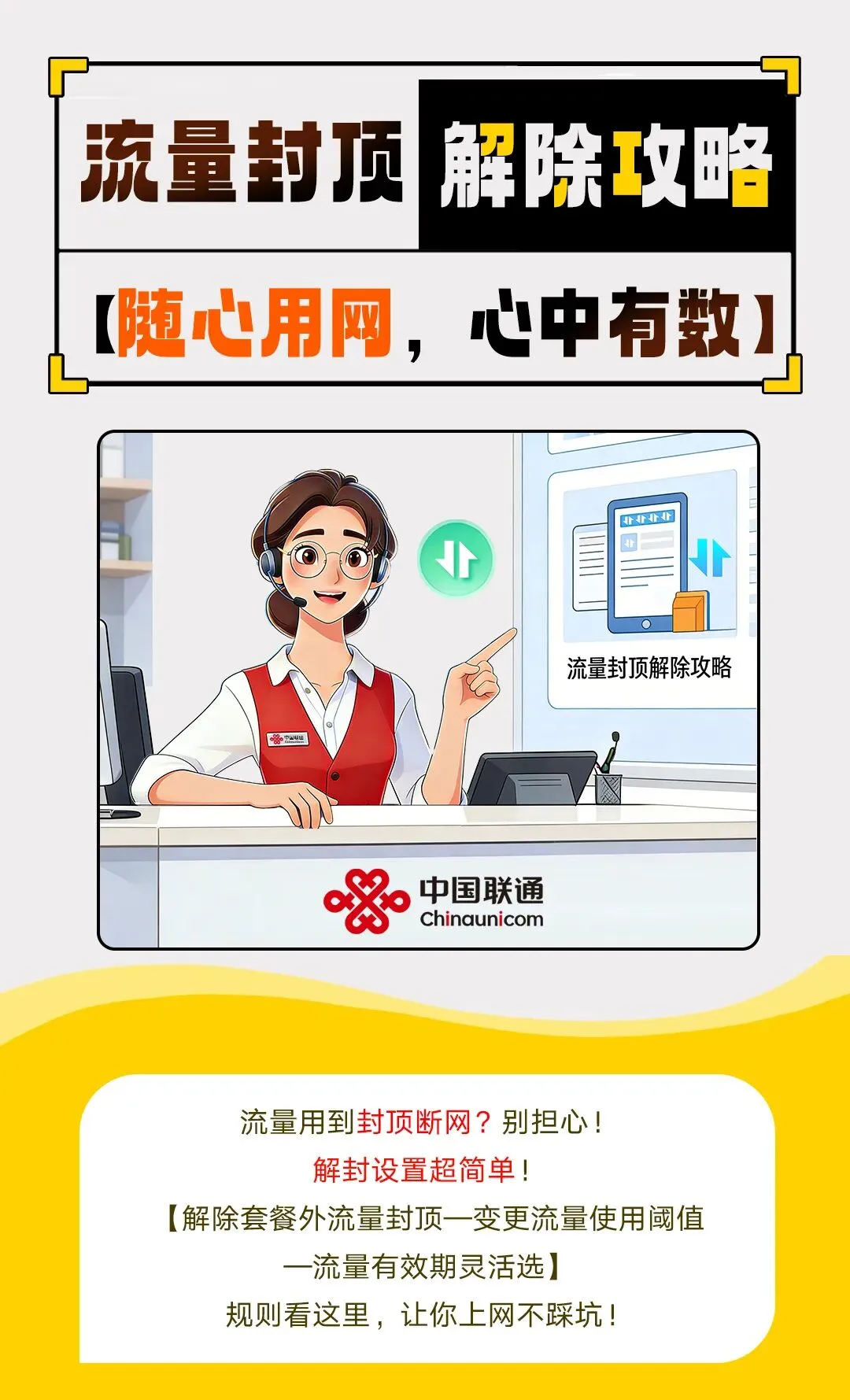 【玩转中国联通APP】一键解除流量封顶��