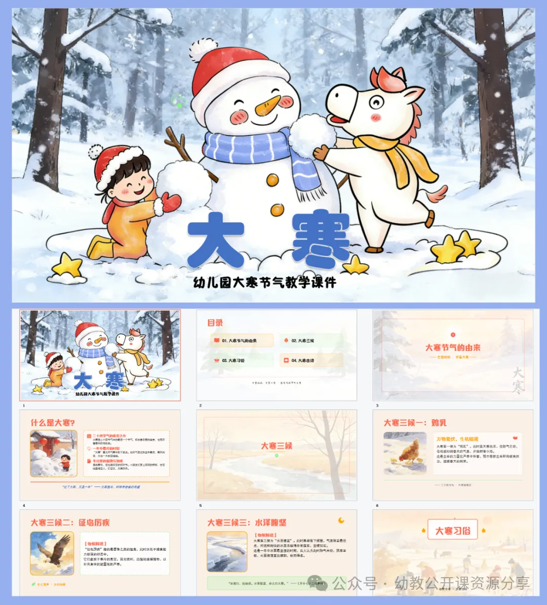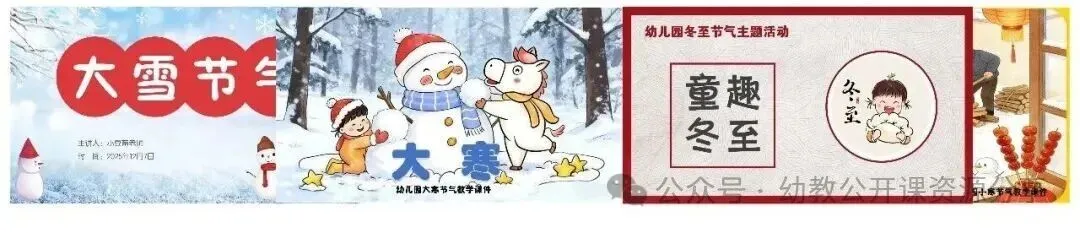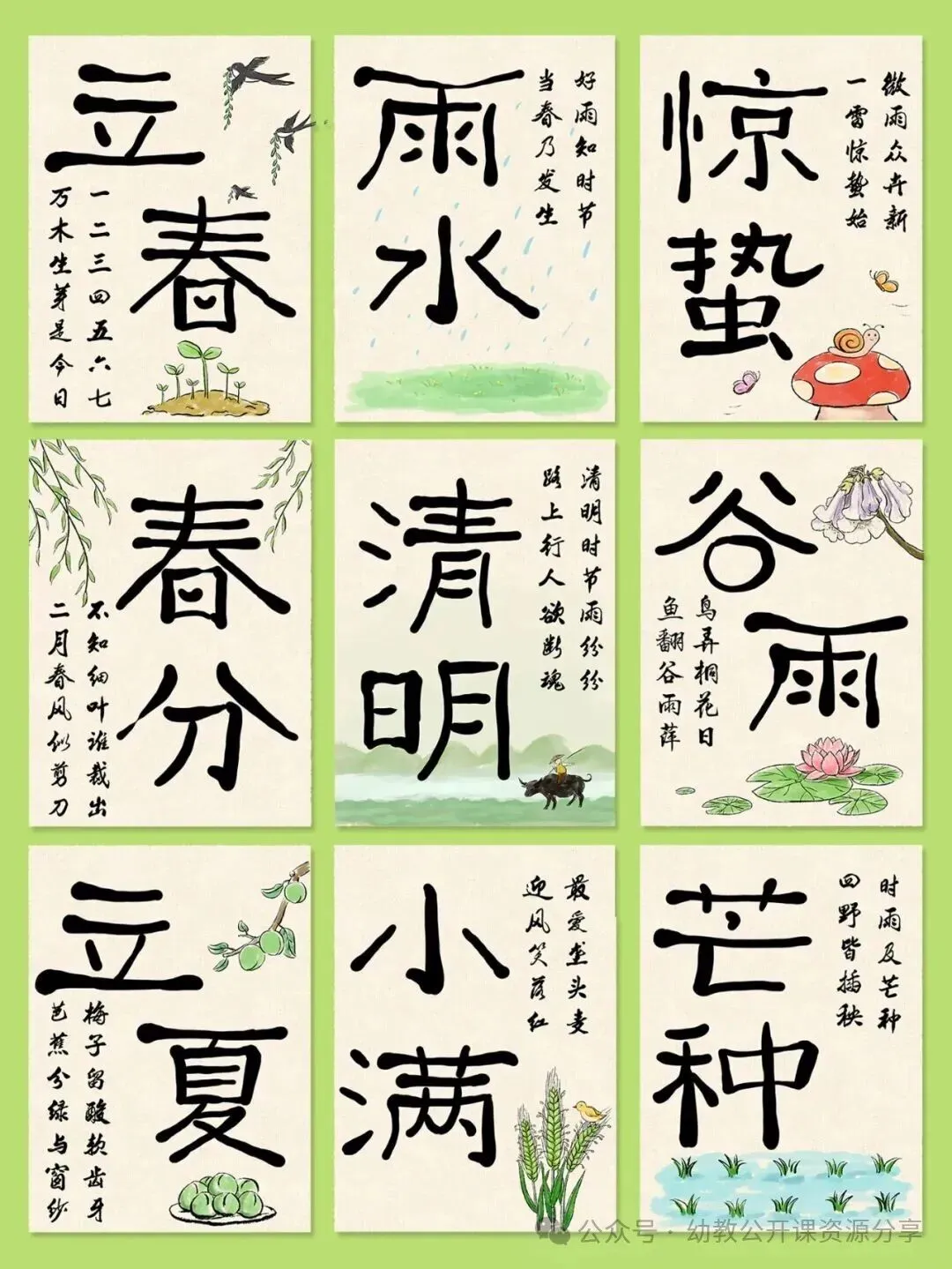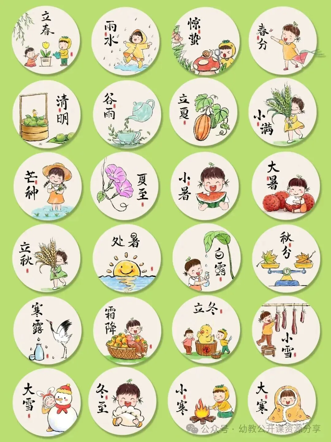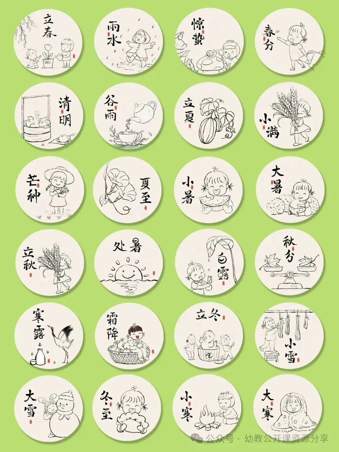 幼儿园二十四节气环创素材打印合集(彩图+线稿)+配套课件PPT 🌈春雨惊春清谷天,夏满芒夏暑相连。 🌈秋处露秋寒霜降,冬雪雪冬小大寒。 二十四节气是中国传统文化的重要组成部分。今天老师为大家更新分享一波丰富的二十四节气主题环创插画素材(可打印),含线稿与彩图版及艺术字体分享,及24个节气主题的配套教学教案与课件PPT(全)。 丰富的环创素材可自由搭配适用于主题文化墙、吊饰、美工区角等多场景,配套教案及课件助力老师教育教学板块,超级实用! 可打印素材分享 文末下载领取 以下环创素材 可直接打印使用 01 24节气艺术字体 高清大图 无水印 02 24节气插画稿 高清大图 无水印 03 24节气·时令花令 高清大图 无水印 教 育 教 学 篇 二十四节气课件预览 ← 左右滑动 查看更多 → 本平台部分文章、图片来源或改编自互联网及其他公众平台,如有侵犯您的权益或版权请及时告知我们,我们将尽快删除, 点击“扫以下二维码”领取更多资源↓↓↓ 【各种幼教资料看以下】 长按识别二维码 备注来意