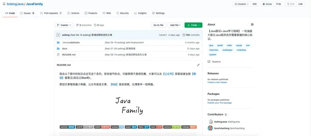 github:https://github.com/AobingJava/JavaFamily