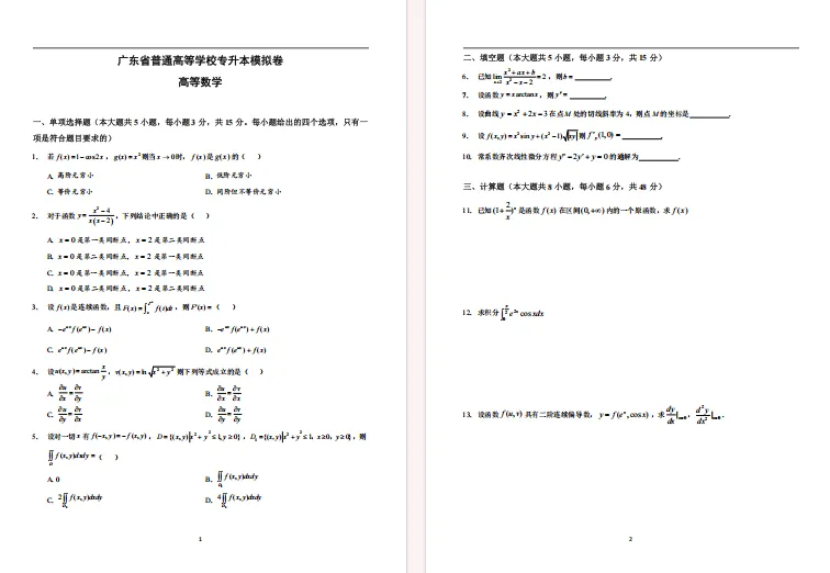 为了更好地帮助专插本考生做好考前准备,检验一下目前的复习情况,下面整理了2026普通专升本9门专业基础课的模拟卷▼