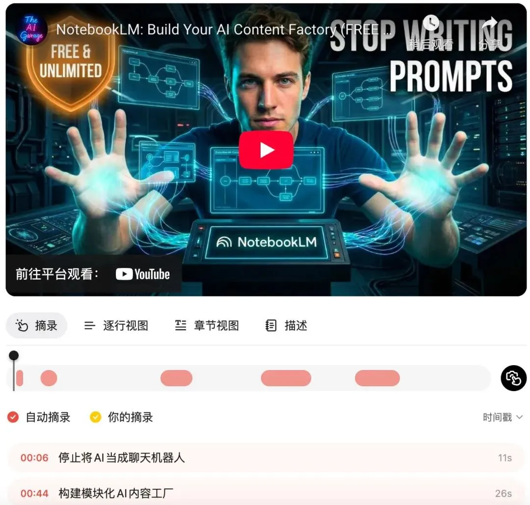 快速提炼:把一个小时的视频,提炼成 5 分钟能看完的核心观点