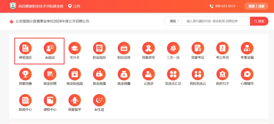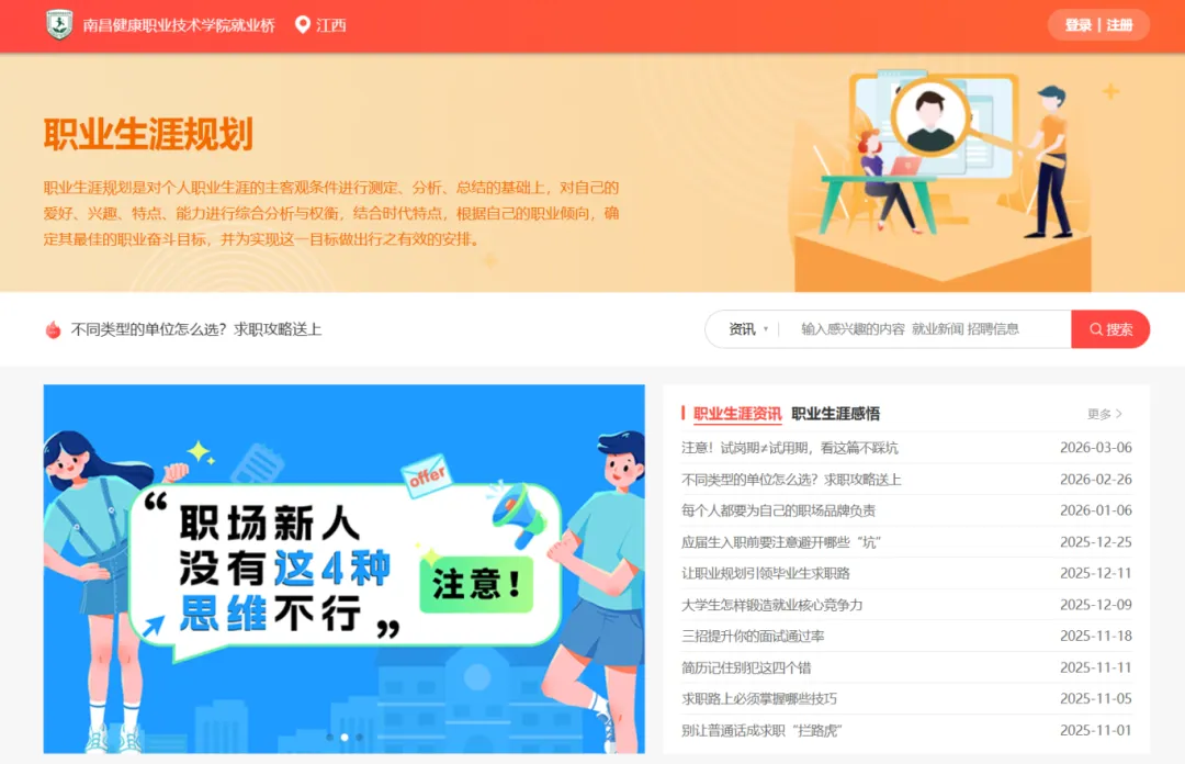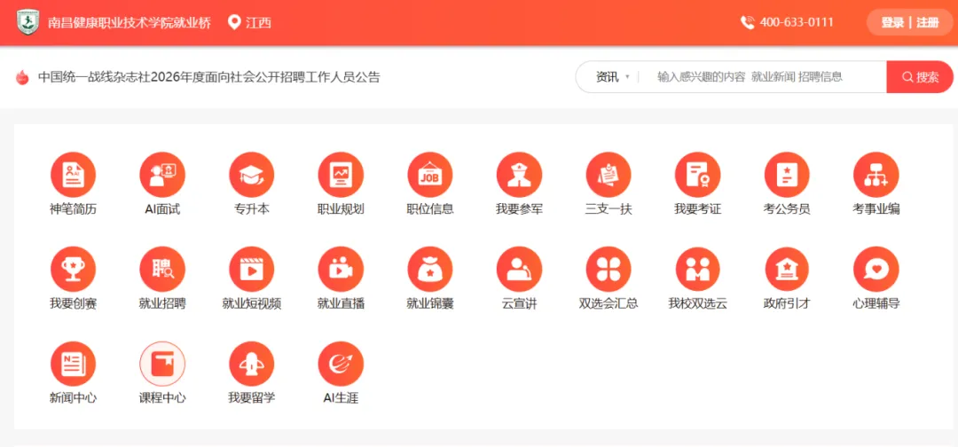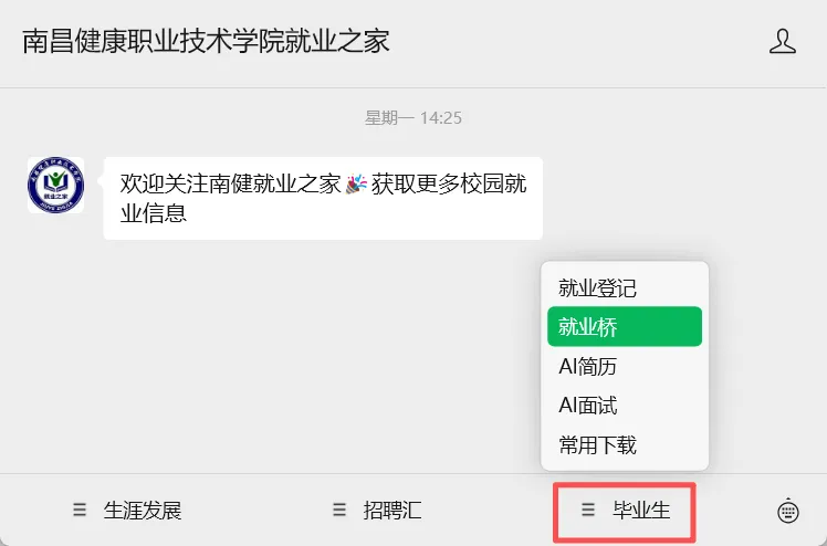 打开手机关注【南昌健康职业技术学院就业之家】点击“毕业生”板块中的“就业桥”